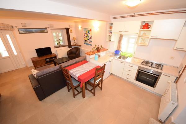 Stara kamena kuća obnovljena i opremljena svim potrebnim sadržajima. Smještena na osami omogućuje miran i ugodan odmor. Kuća se nalazi svega 2 kilometra od Orebića, te 400 metara od plaže. Okružena je zelenilom, maslinama i vinogradima. Svega 100 metara šetnje prema vinogradu pruža se prekrasan pogled na more, Orebić i okolicu. Velika terasa, hladovina stoljetnog rogača omogućuje savršenu zaštitu od vrućih sunčanih zraka. Za one koji žele savršeni mir, kupanje u besprijekorno čistom moru, sunčanje na lijepim pješčanim plažama i tihe ljetne noći, ova kuća je idealno mjesto za Vaš odmor.