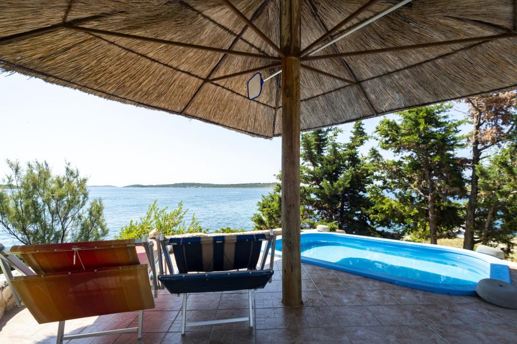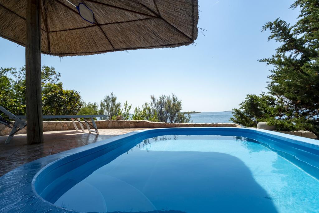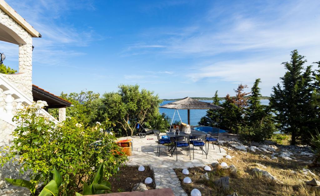 Villa Pauk za 8 osoba se nalazi na otoku Žižnju (odmah iza Pašmana) i udaljena je 30 minuta od Nacionalnog parka Kornati. Zemljište je veličine 4500 m2 i pruža mogućnost ekskluzivnog i romantičnog odmora turistima koji vole mir, tišinu i privatnost. Prvi susjed je udaljen oko 400 metara. Na raspolaganju je privatna kamena plaža s vlastitim molom a za djecu i neplivače nalazi se manji bazen s morskom vodom i velikim slamnatim suncobranom. Kuća ima 3 spavaće sobe-dvije s bračnim krevetom a jedna s 4 odvojena kreveta, a u dnevnom boravku ima također kauč na razvlačenje. Kuća ima solarnu električnu energiju koja napaja 2 frižidera i tekuću vodu iz spremnika. Rustikalna zidana kuhinja spojena je s dnevnom sobom u kojoj se nalazi kamin. Na velikoj natkrivenoj terasi nalazi stol za objede i kartanje. Zidani vanjski roštilj se nalazi na jednoj od 4 terase.