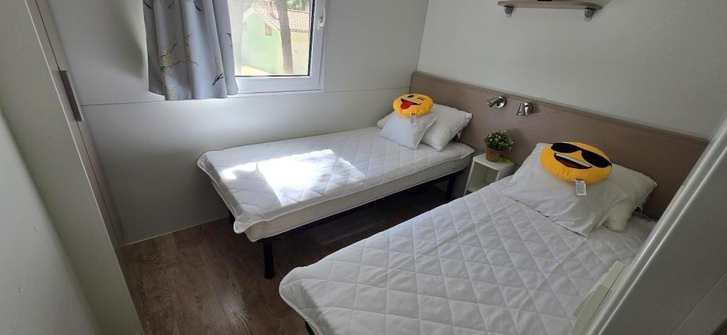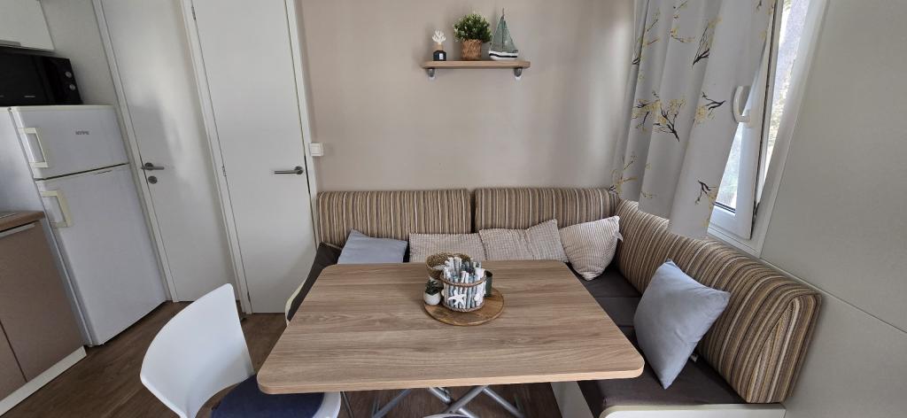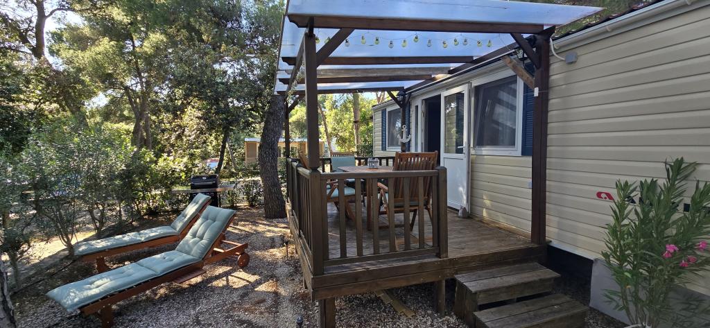 Ljeto je tu, Rezervirajte svoj termin za 2025. godinu Mobile Home Vomer Beachside unit Potpuno opremljena mobilna kućica u Kampu Kozarice Pakoštane Plaža 50 m Ugodan hlad i u vrijeme najjačeg sunca. 4+1 osoba 32 m2 + terasa 10 m2 Spavaća soba 1 1 bračni krevet Spavaća soba 2 2 kreveta za jednu osobu Dnevni boravak (kauč na razvlačenje) 2 kupaone sup vanjski tuš, Tv Besplatan parking (odmah uz kučicu) Besplatan WiFi (A1 brzi internet) Klima Roštilj Posteljina, ručnici U kuhinji su indukcija, hladnjak sa zamrzivačem, mikrovalna, toster, kuhalo za vodu, posuđe ... Na terasi vas čeka mjesto za odmor u udobnim ležaljkama. U kampu se nalazi park, a perilica i sušilicu rublja u neposrednoj blizini. Restoran i kafić unutar kampa na nekoliko minuta hoda Blizina grada (3 min pješice), šetnica, restorana, kafića, apoteke, trgovina,