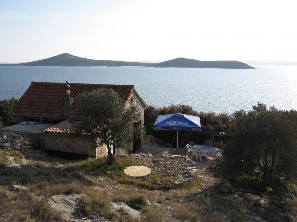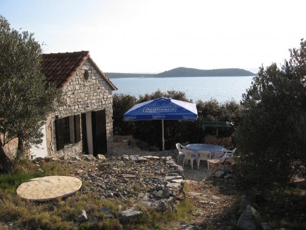 Objekt je kompletno opremljen za robinzonski turizam/ stara dalmatinska kućica, smješten je na otoku Pašmanu, na ne naseljenom dijelu otoka, što znači da je voda iz spremnika, a električna energija se dobiva iz solarnih panela sunčevim putem, najbliži objekt je u krugu od 100metara. Plaža je privatna tako da gosti imaju pravo korištenja na nju. Kučica ima pogled na otok Žut, otok Žižanj, otok Košaru i na Kornatski arhipelag. Put koji vodi do kućice je šljunčani put, a do kućice je moguć pristup automobilom. Objekt se nalazi 10 minuta vožnje od naseljenog mjesta Tkon, u kojem se nalaze dućani gdje se mogu kupiti osnovne stvari za život. Ako vas zanimaju još ikakve pojedinosti slobodno pošaljite upit na mail.