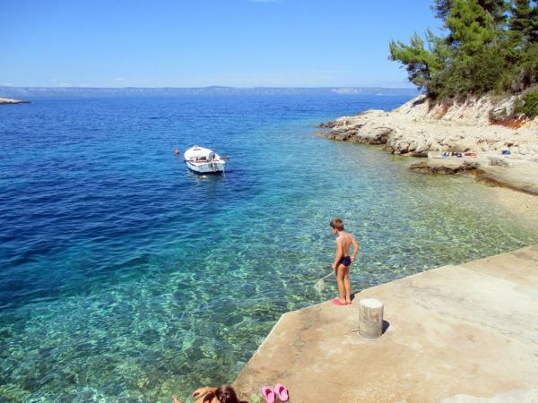 Apartman je na jako mirnoj lokaciji, u maloj uvalici s privat plažom, koja je cca 20m niže, niz stepenice. Ogromna terasa a razgled s terase je prekrasan. Nekoliko minuta vožnje do Vela Luke. Apartman je prostoran, čist, a i gospodja Fani je pobrinula, da nam ništa ne fali. Super za odmor i otklop od svakodnevice.