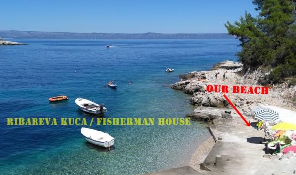 Turistička pristojba je uključena u cijenu.Cesta i privatni parking udaljen su svega 80 mt i povezana sa kućom cementiranim puteljkom. Kako biste u potpunosti uživali u ovom malom dijelu raja, dovoljno je da sa sobom ponesete dobru knjigu. Ukoliko se pak, želite iskušati u ribolovu, ili ste već iskusni ribolovci, dovoljno je da ponesete pribor za ribolov. Ribareva kuća pruža pravi i originalni dalmatinski ugođaj upotpunjen predivnim pogledom, kristalno čistim morem. Ako nas odaberete za Vas odmor imati cete dobrodoslicu u nasim apartmanima. Životinje, nažalost, više nisu dobrodošle zbog negativnih prijašnjih iskustava.