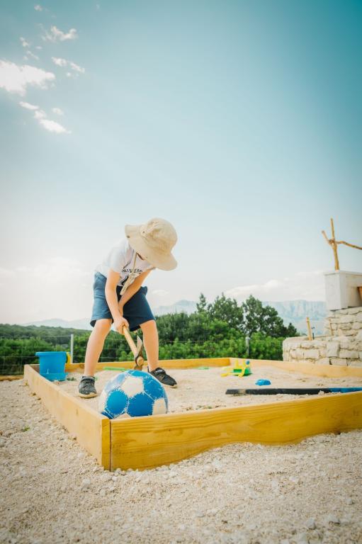 Na ranču se mogu naći dvije ljuljačke, jedna je odmah ispred kuće, druga u sred maslinika pod maslinama. Ispod stabla bajama je još jedna ležaljka i stol za ping pong. Privatna cesta za do plaže. 7 stabala smokve koje su spremne za berbu sredinom srpnja pa sve do sredine kolovoza. Šljive, grožđe, marelice, jabuke, trešnje i višnje. Sve na dohvat ruke u eko uzgoju bez bilo kakvih kemikalija.