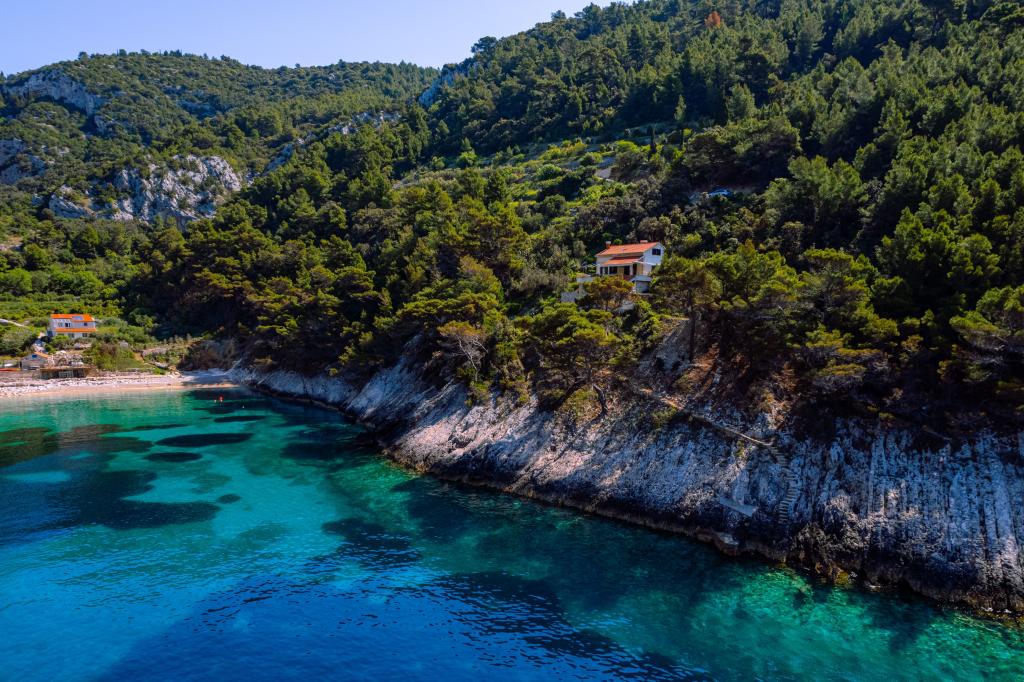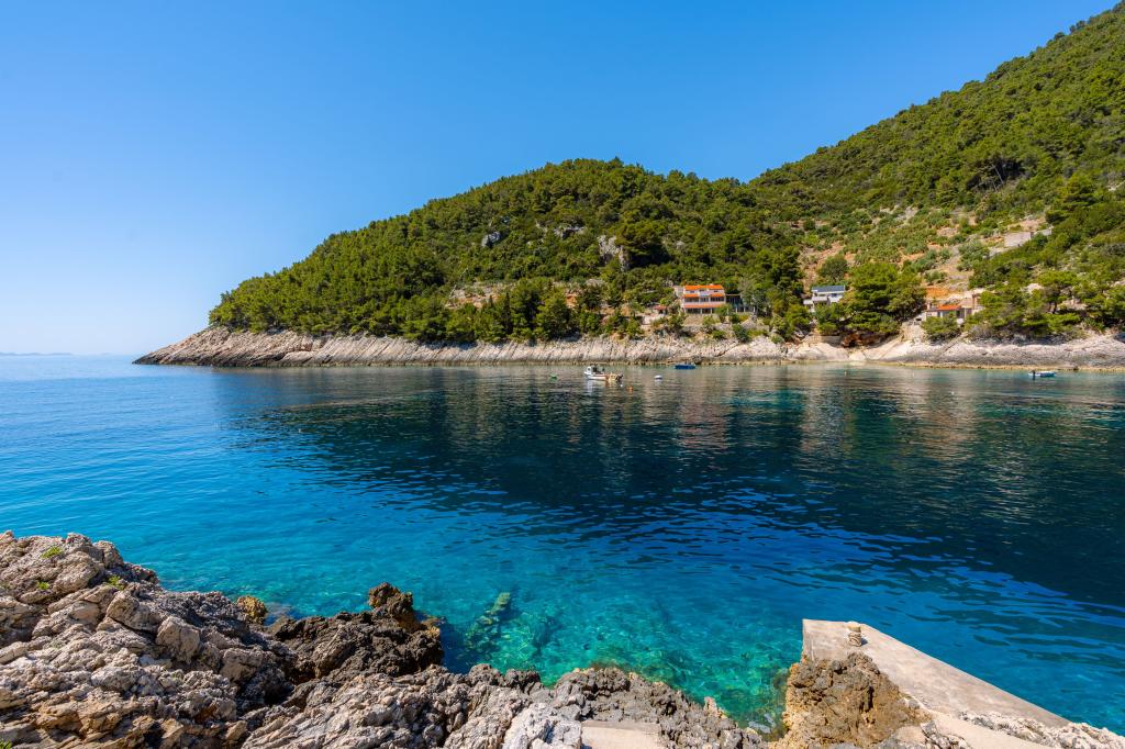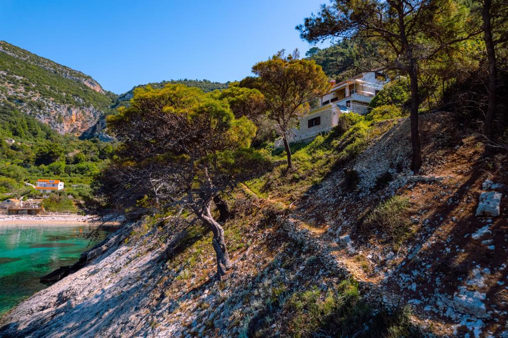 Iz uvale koja gleda prema otoku Lastovu, i dalje: prema Italiji, i koja je skoro odsječena od civilizacije nalazi se Robinsonsova kuca. Kuća raspolaže sa 4 spavaće sobe (kapaciteta 8 osoba), dnevnim boravkom, više terasa, 3 kupatila, dvije relativno dobro opremljene kuhinje, vanjski gril. Okolica je strma, kamenita i zelena (jaka vegetacija). U uvali se nalazi predivna šljunčana plaža i restoran. Na drugoj strani uvale se nalaze jos par drugih kučica. Dakle, posve sami niste... Prilaz kuci: Glavna cesta zavrsava kada dolazite na malu, usku cestu (5km do kuce). nakon 5 km mozete ostaviti Vas auto na parkirno mjesto. Odatle do kuce vodi uski puteljak kroz obilnu vegetaciju (cca. 30m). Tada dolazi jedinstven dozivljaj: prekrasan pogled i veoma dobro organizirana i opremljena kuca (jasno, u mogucnostima koje dozvoljava robinsonska okolica). Zelimo Vam ovaj smjestaj predstaviti kao nesto jedinstveno.