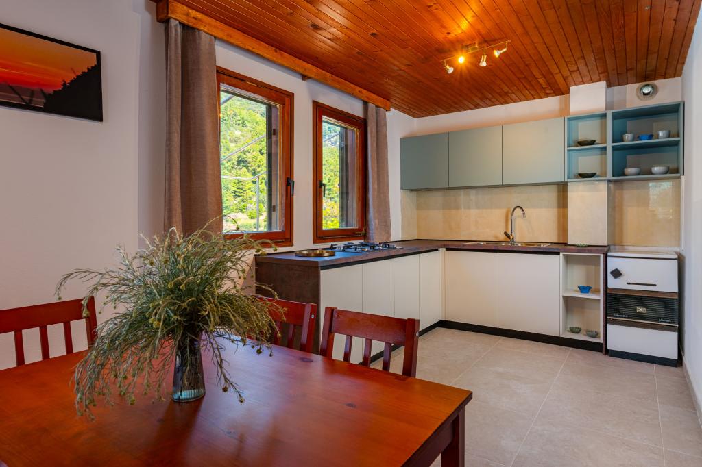 Pročitaj višeOvu kuću preporučujemo samo prijateljima prirode kojima neće smetati robinsonovi uvjeti života. U kuća je rasvjeta na struju koja se dobiva iz solarnih kolektora (mogućnost punjenja laptopa i mobitela), pitka voda, plinski štednjaci i frižideri (145L), te grijanje vode putem solarnog kolektora.