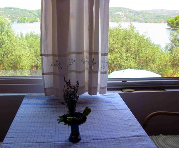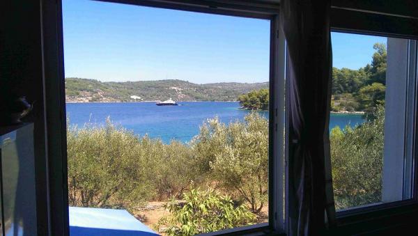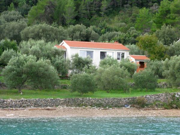 Prekrasna, samostojeća kuća okružena maslinama i udaljena samo 20 metara od mora i prekrasne šljunčane plaže. Kuća ima tri spavaće sobe, kupaonu, potpuno opremljenu kuhinju, te blagovaonicu i dnevni boravak sa pogledom na more. Ova ekološka kuća se napaja solarnom energijom i koristi kišnicu. Upotreba svih uređaja je moguća u razumnoj mjeri, a napajanje je 220 V. Kuća se nalazi u mirnoj uvali koja je samo 2.5 km udaljena od centra Vele Luke u kojem se nalaze dućani, restorani i kafići.