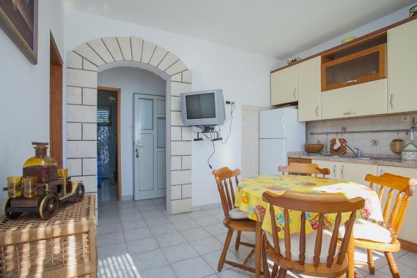 Kuća je smještena na otočiću Pržnjak, na Južnoj strani otoka Korčule, blizu Vele Luke. Na samom moru, svega nekoliko metara, kuća može smjestiti maksimalno 7 osoba, u dva apartmana su tri sobe s 3 bračna kreveta i 1 pomoćni ležaj, 2 kuhinje i 2 wc-a. Imamo veliku okućnicu koja je ograđena s visokim zidom, veliku terasu koja gledu na morsku pučinu, u dvorištu imamo veliki kamin, i stolove za blagovanje. Svaki apartman je opremljen s TV-om. Struja je na solarne ploče stoga treba ograničiti velike potrošače. Najbliže mjesto je udaljeno oko pola sata vožnje, 10 minuta brodicom i 15-tak minuta autom. Za one koji žele odmor od urbanih sredina pržnjak je pravi raj.