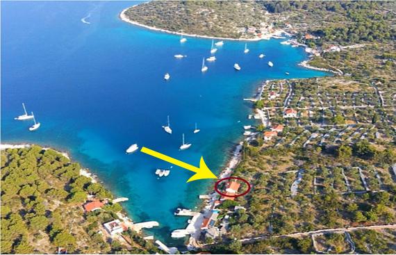Kompletno opremljen objekt sa strujom na 12V i solarnim pločama. Nalazi se na otoku Žutu uvala Dragišina. Ima dvije sobe,kuhinju,ostavu i kupatilo, Velika okučnica sa maslinama,terasom,roštilj i vanjskim tušem.