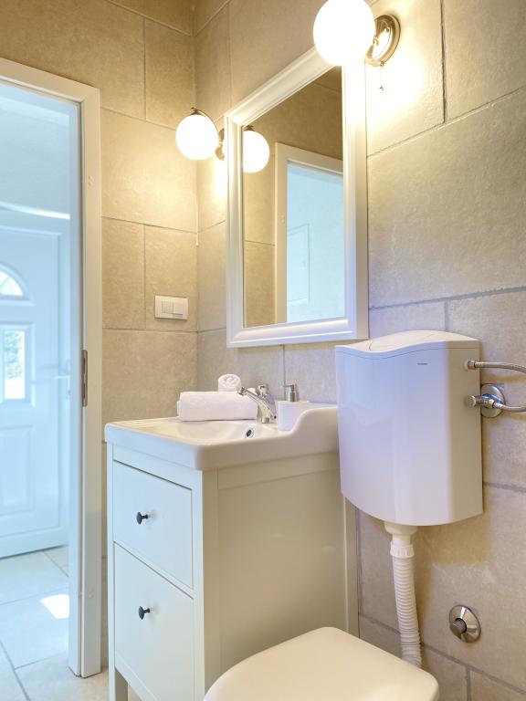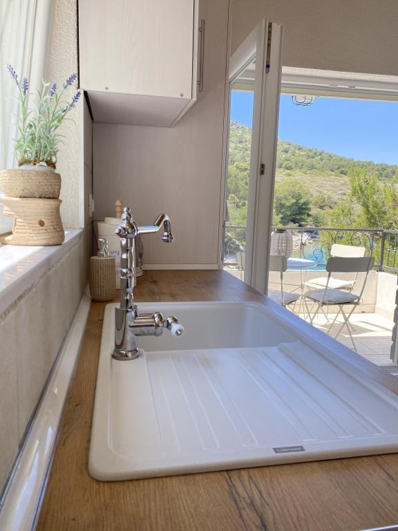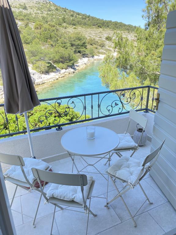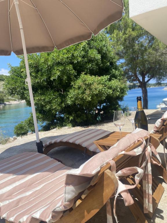 Lokacija i kuća su odlični. Mogu reći da je to vrlo udoban Robinson jer je kuća praktički nova i vrlo lijepo namještena... fotografije su ono što vas čeka. Za malu rezervnu opciju, imate 15-minutnu vožnju pedalinom do trgovine u marini ili 700m šetnje uz obalu uz stijene, a već postoji i staza. U uvali ima 6 kuća, ali ova je jedina za najam i bili smo sami. Čak imate i toplu vodu u tušu i veslanju... ukratko, sve što vam treba i vrlo ljubazne, prijateljske vlasnike koji vas brzim brodom dovoze na lokaciju.