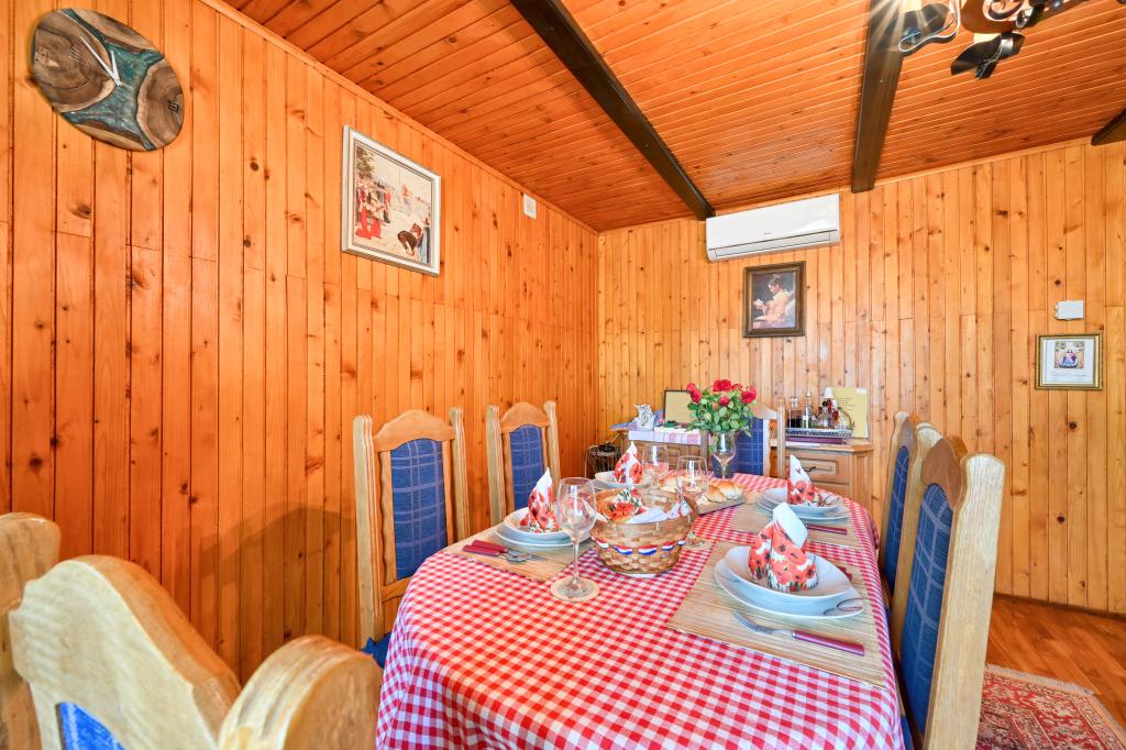 Kuća za odmor Rukova Hiža Rukova Hiža uređena je kao spoj prošlosti i sadašnjosti, donji dio je obnovljen u starom stilu,dok je potkrovlje uređeno u stilu sadašnjosti s modernim namještajem i materijalima, za svakoga ponešto. Boravak za 4 osobe u tri sobe(+dječji krevetić). Na raspolaganju potpuno opremljena kuhinja. Kupaona + dodatni wc Besplatan wi-fi, IPTV. Na dvorištu roštilj, te dvije terase. Kuća se sastoji od prizemlja u kojem je smještena kupaonica, kuhinja i dnevni boravak s prostranim stolom koji može primiti i desetak ljudi, dok su u potkrovlju tri spavaće sobe i kupaonica. U sobama se nalaze bračni krevet, dva kreveta i dječji krevetić. Sve sobe opremljene su posteljinom, tv prijemnikom, wi-fi signalom. U neposrednoj blizini Terme Jezerčica i Terme Stubičke toplice Gupčeva hiža Živi arhih Gupčeve lipe Kapela sv.Križa Gupčeva lipa Muzej i dvorac Čovjeku je vrlo malo potrebno da bude sretan, a čudno je kako mu baš to malo tako često