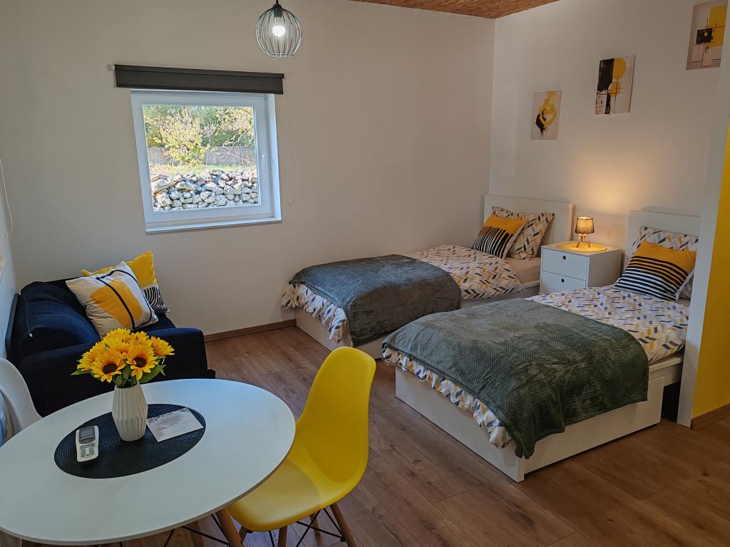 Odličan izbor za miran i opuštajući odmor! Lokacija je savršena – u blizini Nacionalnog parka Krka, mora i Šibenika, a opet u tišini dalmatinskog sela. Apartmani su vrlo udobni, čisti i dobro opremljeni, a okruženje je sigurno i izvrsno za djecu. Domaćini su srdačni i uvijek spremni pomoći savjetima. Osjećali smo se kao kod kuće i sigurno ćemo se vratiti.