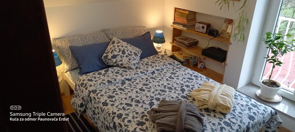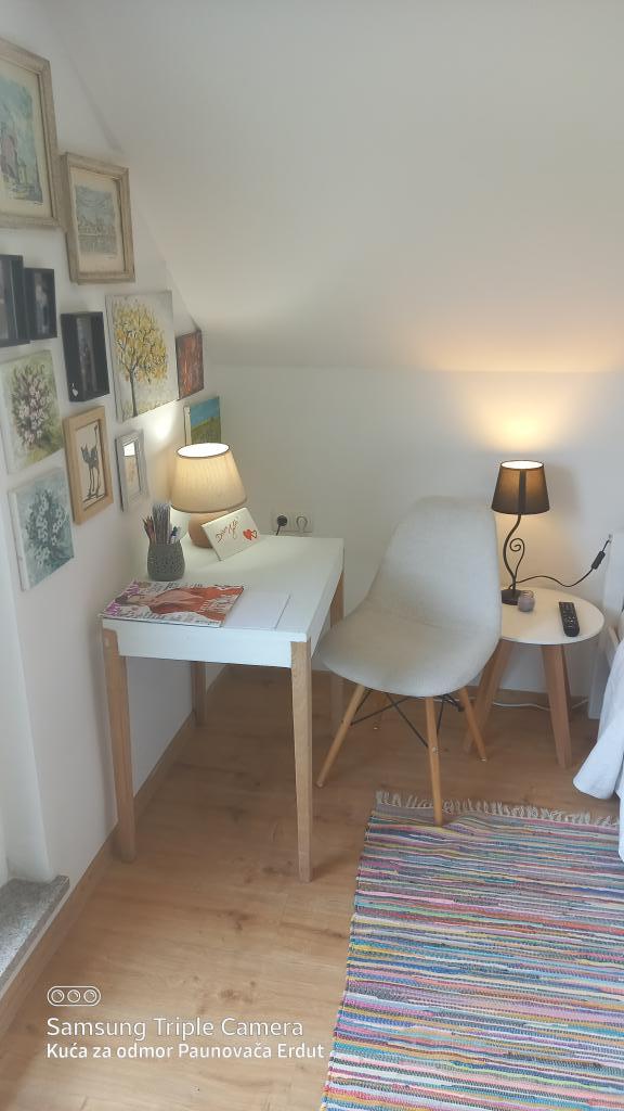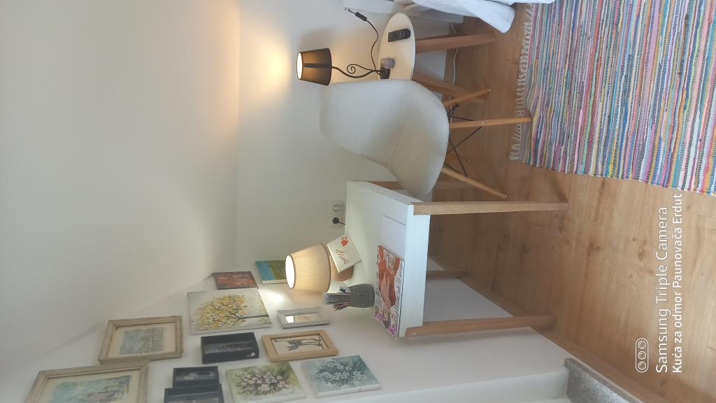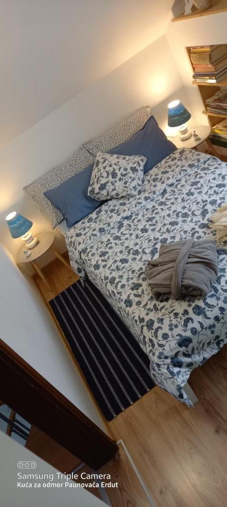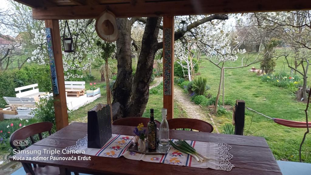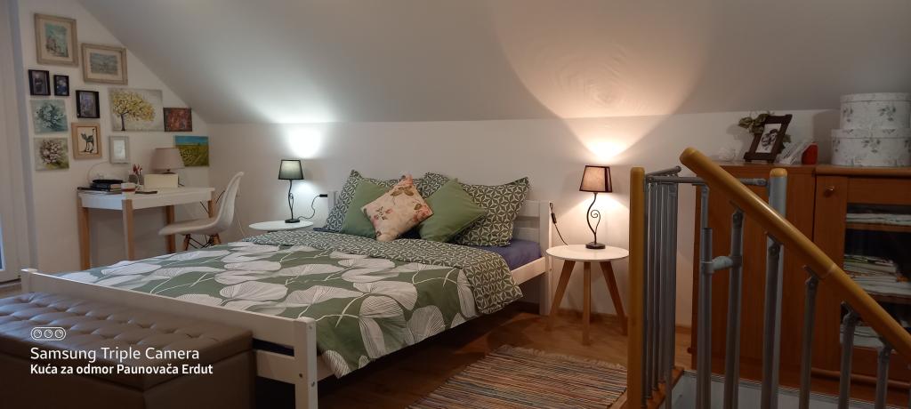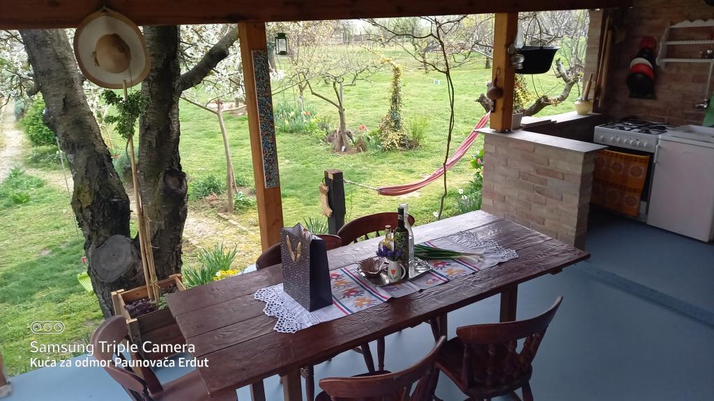 Paunovača Erdut nalazi se u selu Erdut , iznad čarobne zelene šetnice Zelena staza Dunava. Ovo je kuća za odmor koja će vas osvojiti svojom udobnošću, detaljima, nenametljivošću te pružiti vam osjećaj drugog doma. Kuća ima jednu spavaću sobu sa bračnim krevetom, (otvoreni koncept) su drugoj sobi manji krevet, a u dnevnom boravku se nalazi kauč na razvlačenje. U nastavku dnevnog boravka nalazi se blagovaonica i opremljena kuhinja( osim perilice suđa i mikrovalne) Gostima su uvijek na raspolaganju besplatni topli napitci, nekoliko vrsta kave i čaja. U prostranom dvorištu od nalazi se natkrivena terasa s vrtnim roštiljem i vrtom u toplijem dijelu godine s organski uzgojenim povrćem i voćem. Gostima su na raspolaganju besplatno parkiralište i WI FI. Kućica nalazi se na idealnoj poziciji za ljubitelje aktivnog odmora u prirodi, u neposrednoj je blizini spusta za Dunav, pješačkih staza ,stepenice zdravlja ,smještenih kod Stare kule u Erdutu. Dobro došli!