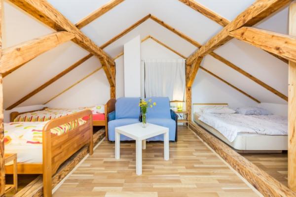 The Poolside Rest je savršena za odmor ili druženja, dovoljno udaljena od bilo kakvog znatiželjnog pogleda. Kuća u prizemlju ima kuhinju i dnevni boravak, koji predstavljaju savršenu fuziju tradicije i modernog dizajna. Isti ambijent se nastavlja i na prvom katu gdje su dvije prozračne spavaće sobe pune prirodnog svjetla i sunčevih zraka koje će vas buditi jutrom. Svaka soba ima udobni bračni krevet, te se na katu nalazi i jedna moderna kupaonica s tušem. Pravo oduševljenje vas čeka na drugom katu koji je čitav jedna zajednička soba u kojoj su dva bračna kreveta i dva kreveta za jednu osobu – izveden je u stilu potkrovlja s kosim stropovima i vidljivim drvenim gredama koje iskaču s bijele površine, te drvenim okvirima pored kreveta – prava mala oaza koja liči na kućicu na drvetu s pet zvjezdica! Na ovom katu je također zasebna kupaonica s tušem koja osigurava komfor i izbjegavanje gužvi oko jutarnjeg spremanja.
