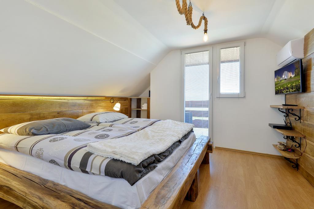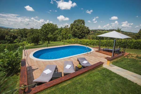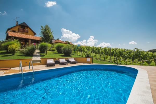 Ova prekrasna kuća za odmor smještena na brežuljku, okružena livadama i vinogradima, pružiti će Vam ugodan godišnji odmor. Kuća je uređena u autohtonom stilu, dok je autohtona drvena hiža pretvorena u dnevni boravak. Na raspolaganju su dvije spavaće sobe od kojih je jedna prolazna s vanjskim zasebnim ulazom, dok do druge s najnižom visinom stropa od 100 cm vode strme stepenice. Tu je i natkrivena terasa na kojoj možete pripremati jela na roštilju, a odmah do nje i bazen za osvježenje u toplim ljetnim danima. Posjetite grad Varaždin s brojnim znamenitostima.