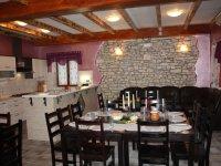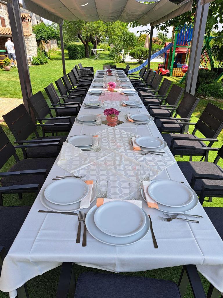 Sačuvana je istarska tradicijska arhitektura, s dodatkom dijelova u modernijem stilu, te se tako dobilo rustikalno zdanje koje odiše tradicijom i udovoljava suvremenim zahtjevima današnjeg gosta. U prizemlju se nalazi seoski turizam gdje gosti na smještaju mogu uživati u doručku ili polupansionu. Za doručak nudimo autohtone delicije, pretežito vlastite proizvodnje od raznih džemova, kruha, hladnih narezaka, sireva, jogurta, voća, slatkih slastica, nudimo i bio doručak, kao i doručak prema posebnim potrebama. Za večeru pripremamo tipična istarska jela (razne tjestenine od fuži, njoki, ravioli, lazanje s raznim umacima i gulašima, te razne mesne plate sa našim proizvodima, sir, pršut). U seoskom turizmu se nalazi prekrasan kamin, prostor za druženje i odmor, koji će posebno u zimskom periodu ovaj ambijent oplemeniti gostoljubivošću domaćina. Osim gostiju na smještaju u našem seoskom turizmu prihvaćamo i najavljene grupe do 30 osoba za sve prigode.