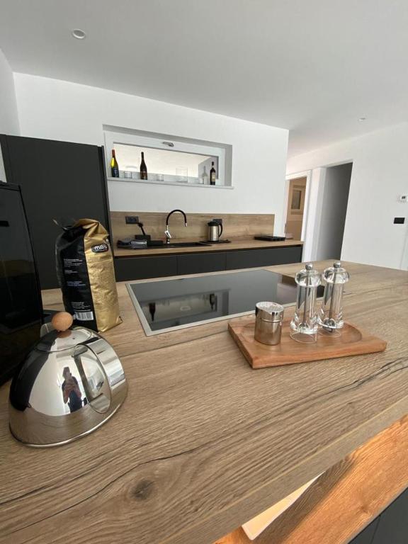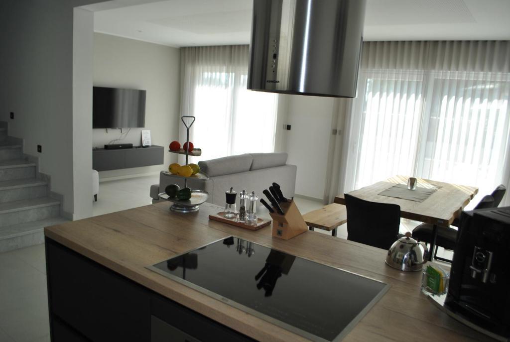 Turistička pristojba je uključena u cijenu.Interijer kuće je praktičan i prostran: tri spavaće sobe, svaka s krevetom s oprugama i ormarom za spavaću sobu. Dvije kupaonice, svaka s tušem, WC-om i velikim umivaonikom (ručnici i sušilo za kosu su osigurani). Na korištenje je dostupna perilica rublja. Kauč na razvlačenje (na razvlačenje) je dostupan za još 2 ležaja. Na 1. katu se nalazi velika terasa i balkon s pogledom na dvije uvale. Na gornjem katu nalazi se prostrana terasa na kojoj možete doživjeti prekrasne izlaske i zalaske sunca. Osim ležaljki, tu je i vanjski tuš i umivaonik na krovu. Cijela kuća je završena i opremljena po vrlo visokom standardu (moderni, ekskluzivni njemački standard). Klima uređaj je dostupan u svim sobama. Podno grijanje također je dostupno za hladnije mjesece (jesen/zima) - ugodna unutarnja klima je svakako osigurana.