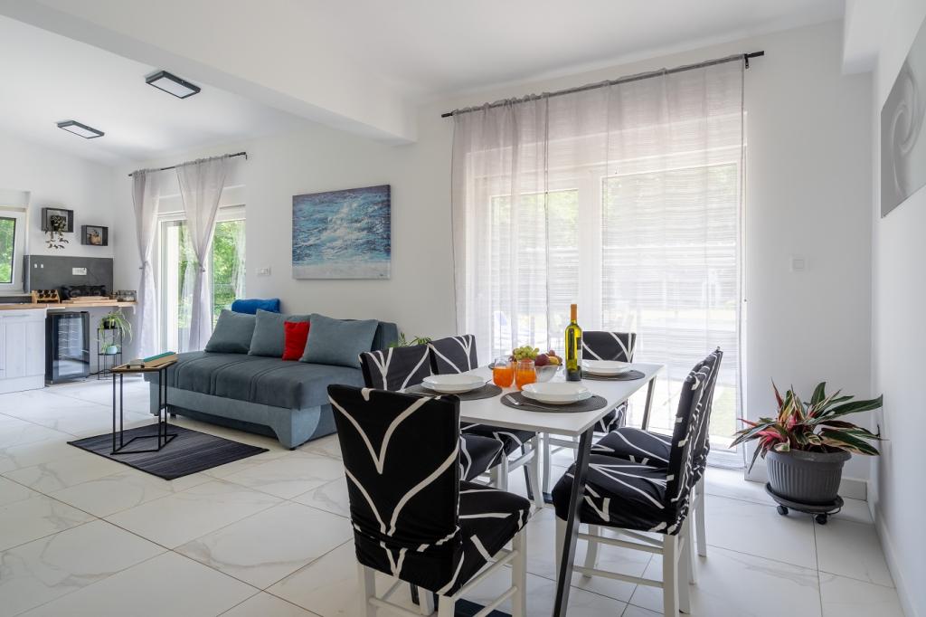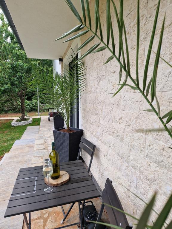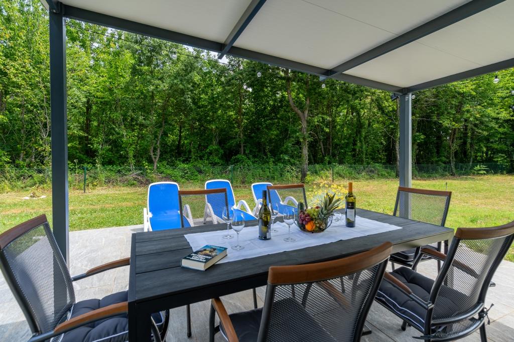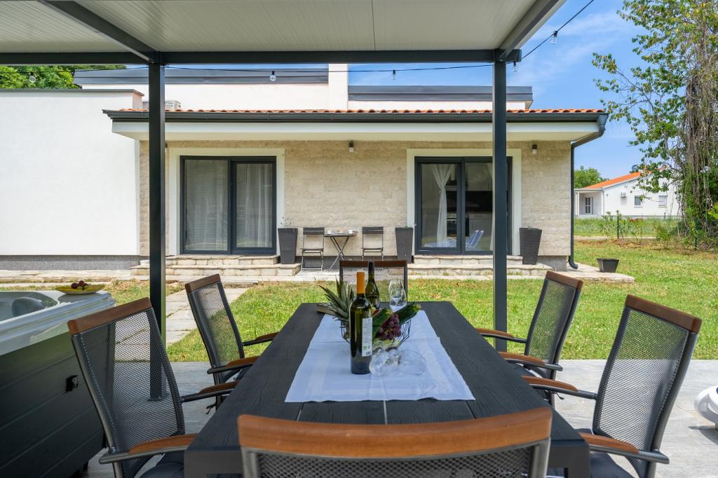Zamislite kako vas bude zrake sunca i pjevanje ptica s okolnih stabala, dok se vi odmarate i uživate u jacuzziu ( massage tub) U potpunoj intimi udobno se smjestite na ležaljku i ispijajte svoju prvu jutarnju kavu ili čaj. Idealna lokacija za goste koji vole opuštanje i uživanje u zelenoj sunčanoj oazi. Udaljeni ste 10 tak minuta vožnje autom od čistih i malih plaža. Naši gosti imaju na korištenje SUP board besplatno. Prekrasna novosagrađena kuća za odmor sa velikom okućnicom od 1300 m2. 2 vanjske terase za uživanje na suncu, sjenica sa hladovinom za uživanje, jacuzzi, oprema za badminton, privatni besplatni parking u hladovini. Kuća se sastoji od 3 spavaće sobe ( svaka soba klimatizirana), 2 kupaone i perilica rublja, klimatiziran veliki dnevni boravak i opremljena kuhinja s perilicom suđa. Udaljeni ste 20 minuta od aerodroma Pula i 25 minuta od rimskog amfiteatra Arena u centru Pule. Nacionalni park Brijuni kao i grad Rovinj udaljeni su 30-tak minuta