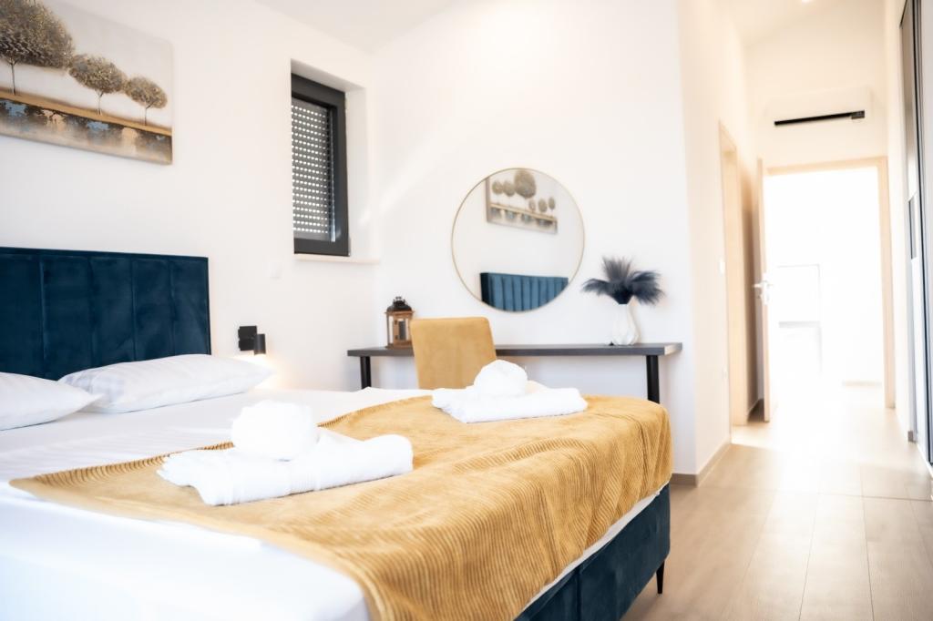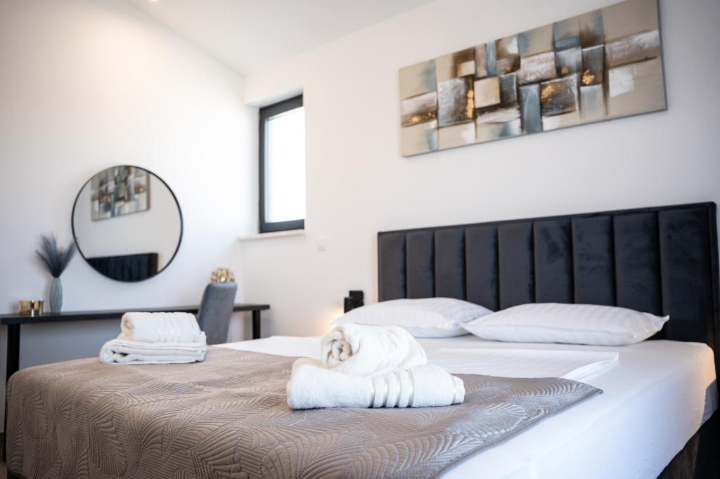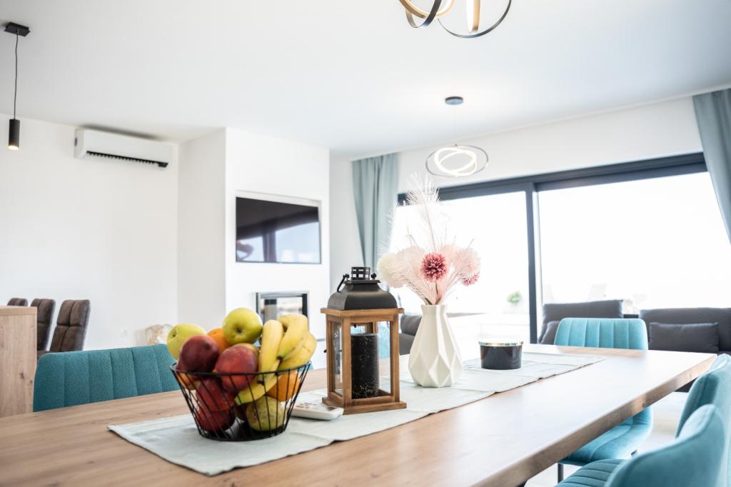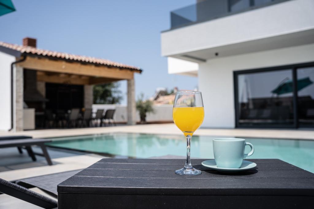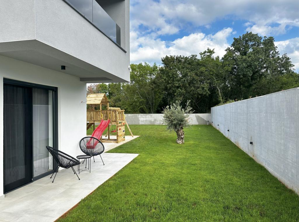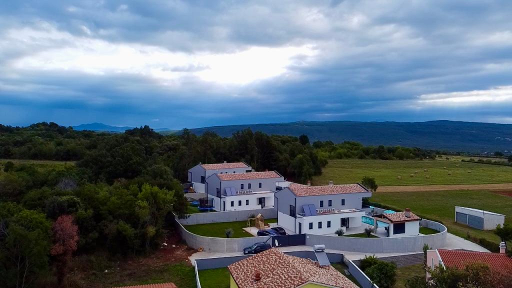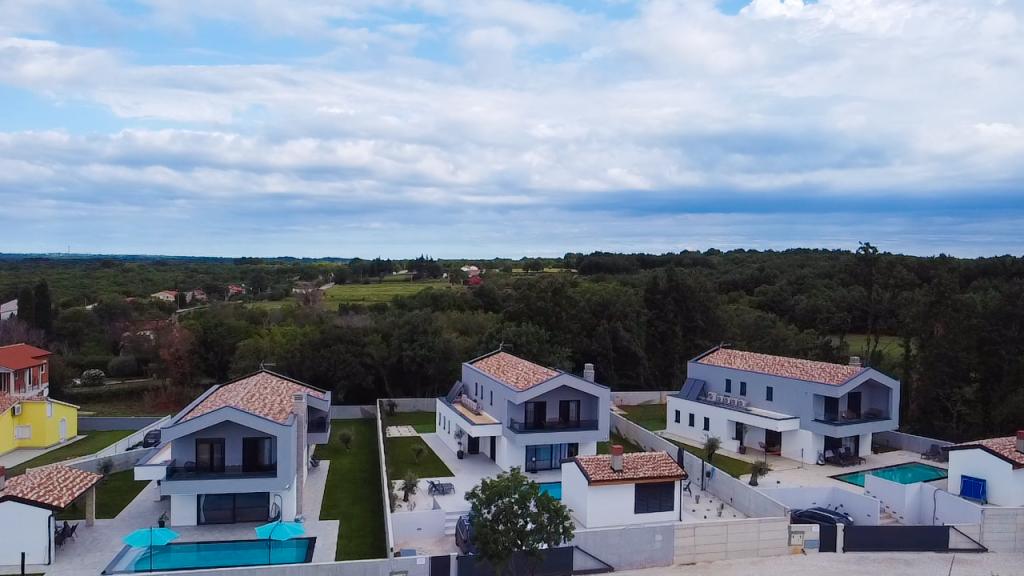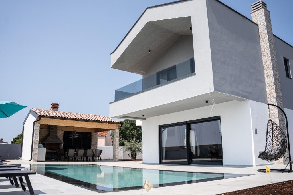 Ova prekrasna vila smještena je na vrlo mirnom mjestu Rebići, Barban, udaljenom samo 2,5 km od mora, okružena je prirodnim ljepotama i zelenilom, te kao takva služi za bezbrižni i savršen odmor, daleko od gradskih gužvi, buke i prometa. U vedrijim danim danima moguć je pogled na more sa balkona na prvom katu kuće. Svaka soba, ima i svoju vlastitu terasu za trenutke privatnosti i mira kada je to potrebno. Vila je uređena vrlo moderno, pružajući vam ugođaj i toplinu doma, izgrađena je 2023. u vrlo modernom stilu a sadrži i vanjski objekt sa vanjskom kuhinjom, frižiderom te dva roštilja, plinskim i na drva. Okoliš je posebno uređen u kombinaciji moderne plaže oko infinty bazena veličine 10 x 3,8 metara te prekrasnog travnjaka kojeg krase stare masline i druge razne biljke stvarajući oazu za opuštanje. u dvorištu se nalaze ležaljke, suncobrani te dodatni sadržaji poput stolnog tenisa, stolnog nogometa.