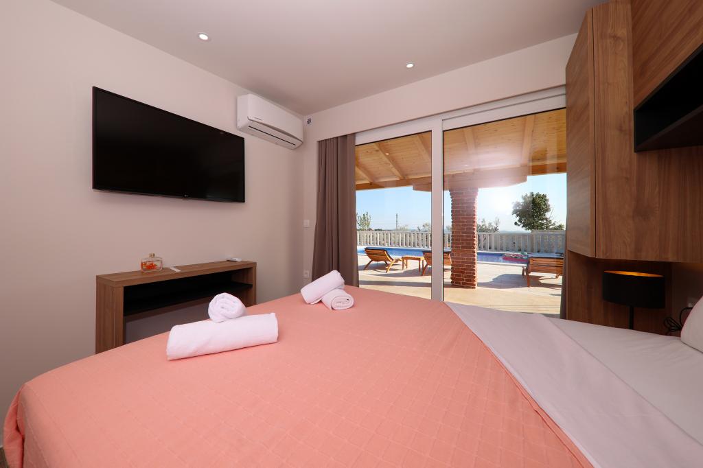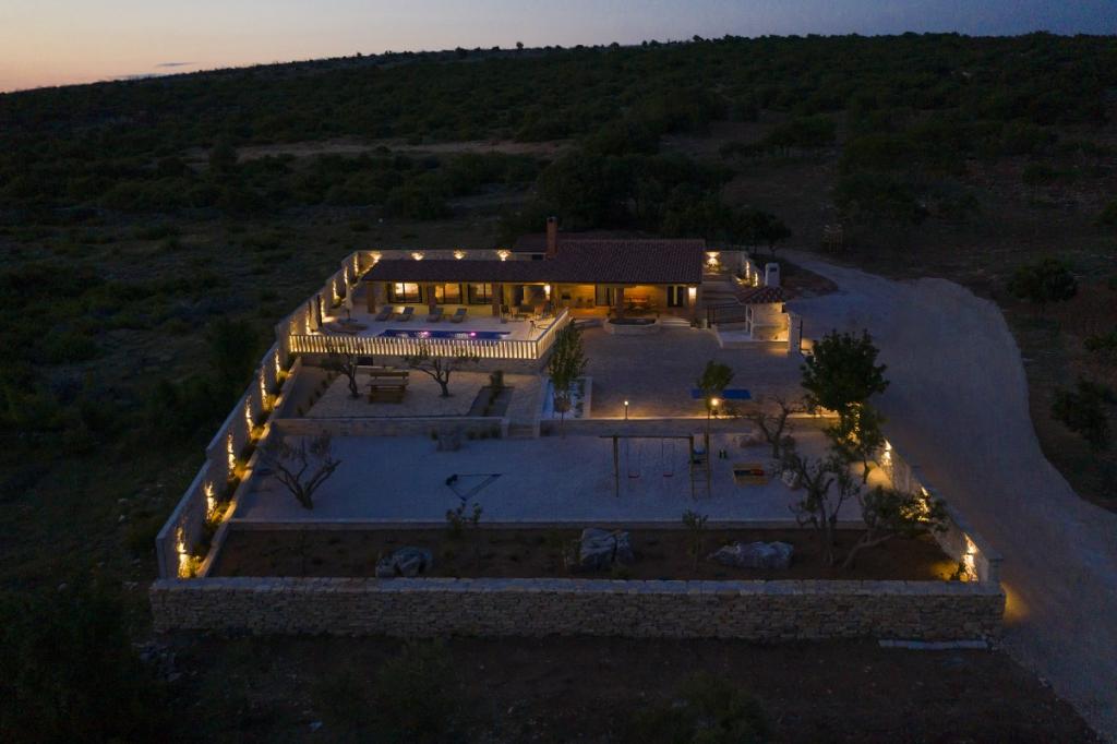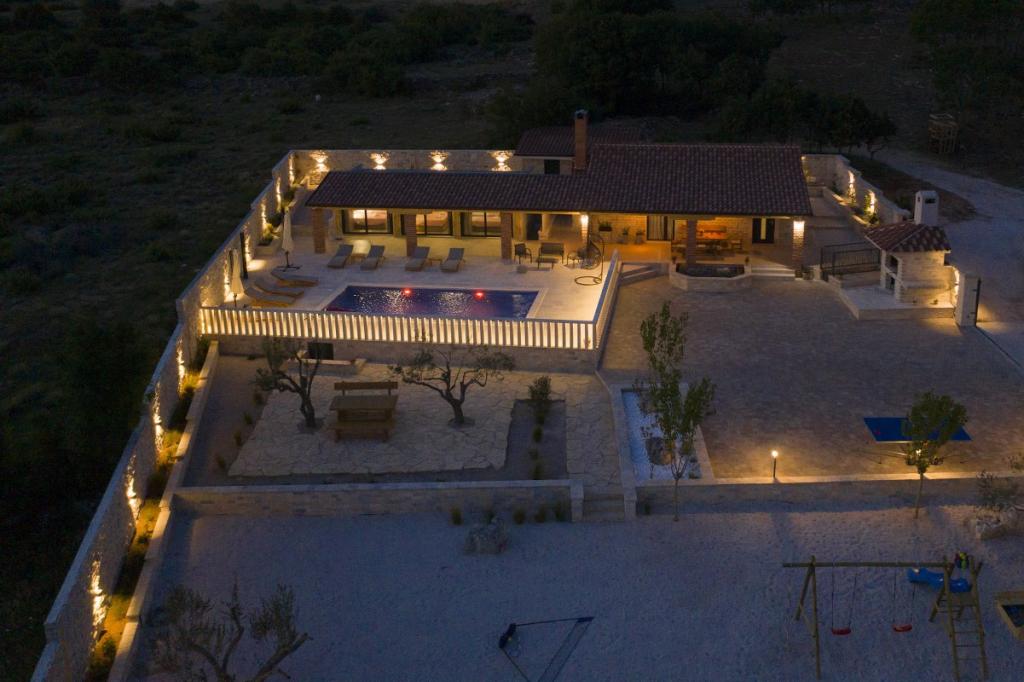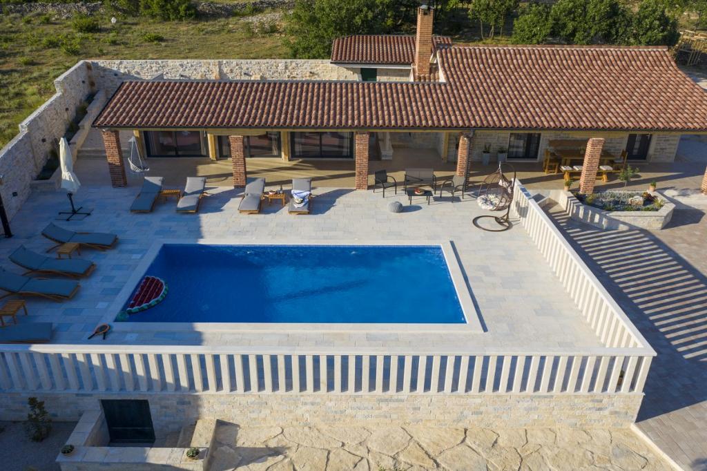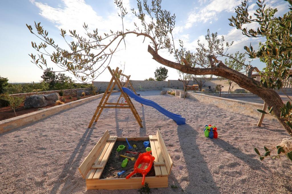 Prekrasna luksuzna vila s privatnim bazenom-Villa Bukovica nova je vila smještena u blizini Zadra. Smještena na privatnom imanju površine 1100 m2 i izgrađena od visokokvalitetnog lokalnog kamena, Villa može udobno primiti grupu do 8 osoba. Ukusno uređen životni prostor podijeljen je u dva dijela, oba s izravnim pristupom lijepom sunčalištu. Šarmantni rustikalno uređeni životni prostor sadrži potpuno opremljenu kuhinju otvorenog plana, blagovaonicu i elegantan dnevni boravak u kojem dominira vintage namještaj . Sve 4 spavaće sobe su klimatizirane i imaju vlastite kupaonice. Prostrani vanjski prostor nudi vam lijep privatni bazen, prekrasnu natkrivenu terasu sa stolom za blagovanje, dječje igralište i tradicionalni otvoreni kamin. I na kraju, ali ne najmanje važno, u podrumu se nalazi dobro opremljen vinski podrum. Tamo možete uživati u bogatom izboru visokokvalitetnih domaćih vina.