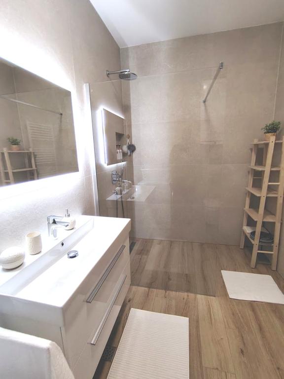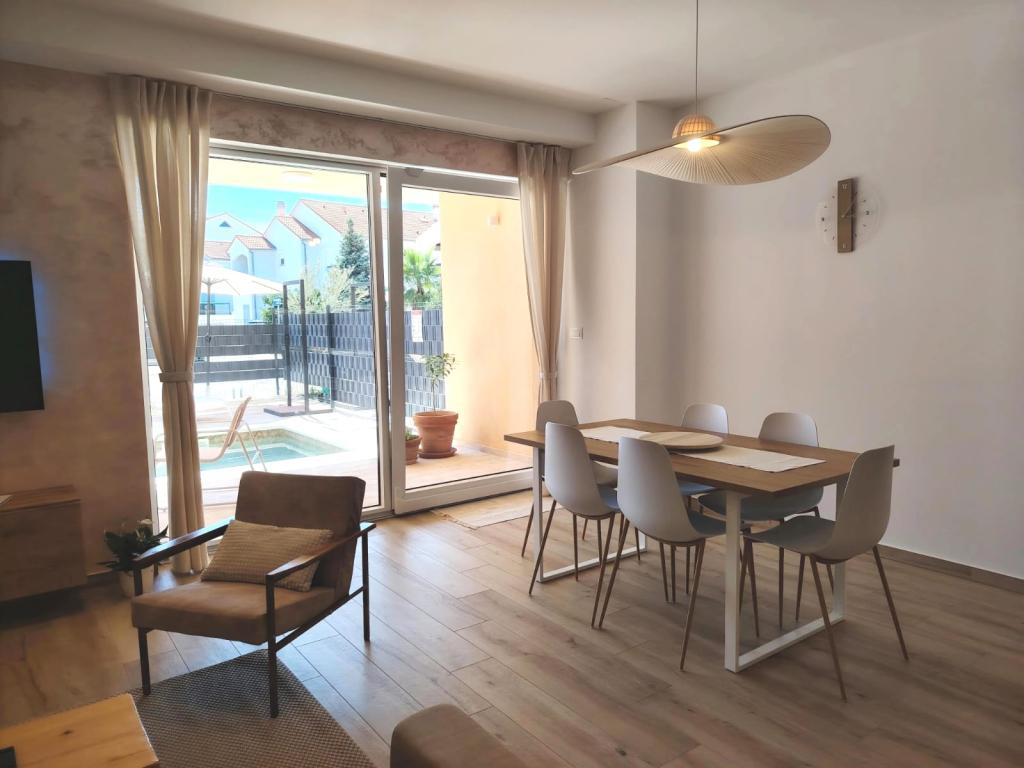 Novo izgrađena dvoetažna kuća za odmor sa bazenom i dvije odvojene stambene jedinice (prizemlje i kat). Svaka stambena jedinica ima 95 kvadrata i opremljena je sa 3 spavaće sobe, kuhinjom, kupaonicom, tarasom i dnevnim boravkom. Parking osiguran.