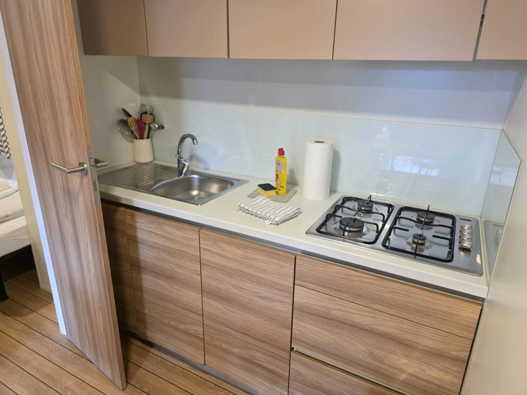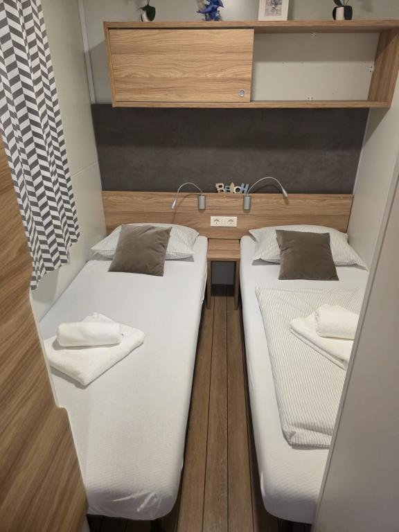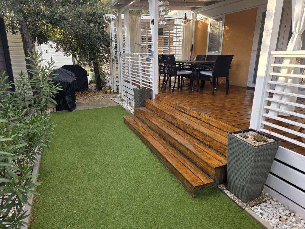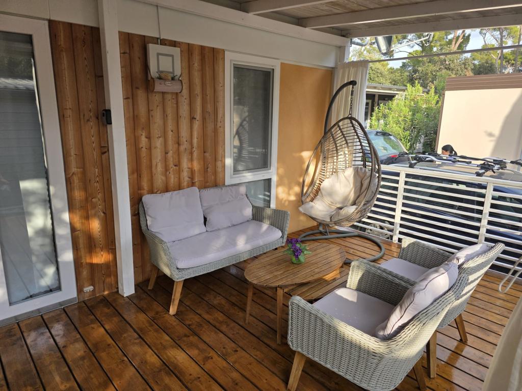 Udoban smještaj: Mobilna kućica Glamour Pakoštane u Pakoštanima nudi dvije spavaće sobe i dvije kupaonice s prostranim dnevnim boravkom. Objekt uključuje potpuno opremljenu kuhinju, klima-uređaj i besplatni WiFi. Sadržaji za slobodno vrijeme: gosti mogu uživati u terasi, baru i dječjem bazenu. Dodatni sadržaji uključuju blagovaonicu, vanjski namještaj i besplatno privatno parkiralište u sklopu kampa. Vrhunska lokacija: Kamp se nalazi 27 km od zračne luke Zadar, na nekoliko koraka od plaže Punta. U blizini se nalaze marina Kornati i Muzej baštine Biograd, svaki udaljen 8 km. Mogućnosti plovidbe krase okolicu.