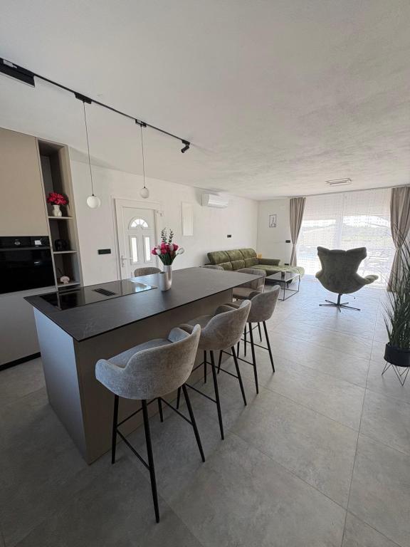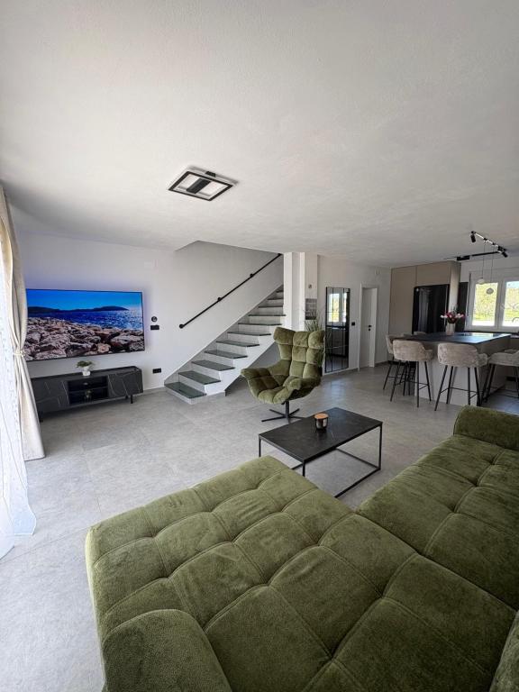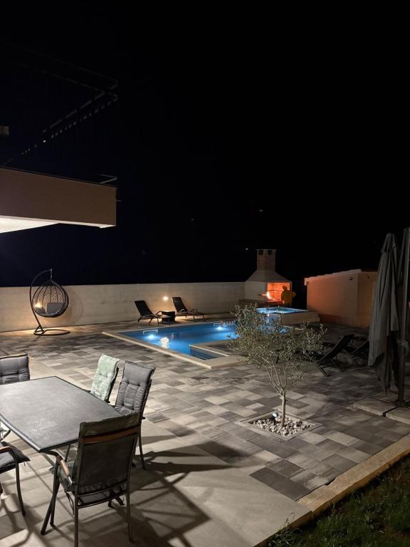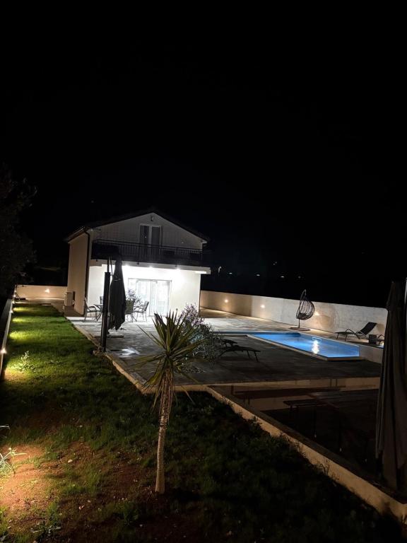 Kuća za odmor se nalazi u srcu masliniku svega 2km udaljenim od mora i predstavlja idealno mjesto za potpuno odmor u miru i tišini. Okružena je prirodom pruža osjećaj privatnosti daleko od gradske gužve . Poseban ugođaj daje grijani bazen savršen za uživanje u proljetnim i ljetnim danima. Prostrana okućnica čini idealan prostor za obiteljske aktivnosti . Na prvom katu kuće se nalaze 3 sobe sa bračnim krevetima i malom kupaonicom . Treća soba ima i balkon sa prekrasnim pogledom na zelenilo , a u prizemlju se nalazi prostrana kuhinja i dnevni boravak . Holiday house Frano idealan je izbor za vas jer spaja udobnost prirode i blizinu mora nudeći vam sve sto je potrebno za nezaboravan boravak . Kuca je opremljena svim kućanskim aparatima i vanjskim kaminom .