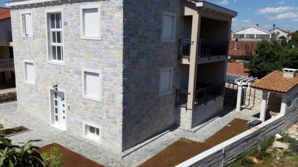 Kompletno uredjena i opremljena vila 4 zjezdice sa 4 sobe i svaka soba ima svoje kupatilo, dva kata na svakom katu su po dvije sobe, na svakom katu je dnevni boravak kuhinja blagavona. u svim sobama je satelitski tv, cijle kuca je klimatizirana, moderno uredena u mediteranskom stilu. ljepa okucnica sa puno zelenila sa rostiljem i bazenom 8x3m jako ugodan prostor za suncanje i za druzenje uz rostilj. Kuca je od grada 15 minuta hoda kao i od plaze, na 2 do 3 min je ducan sa svim potrebnim namjernicama. U Sklopu kuce dobijete i 4 bicikla sa kojima se mozete kretati po gradu.