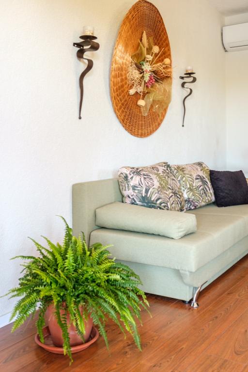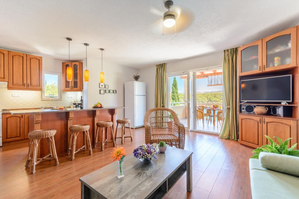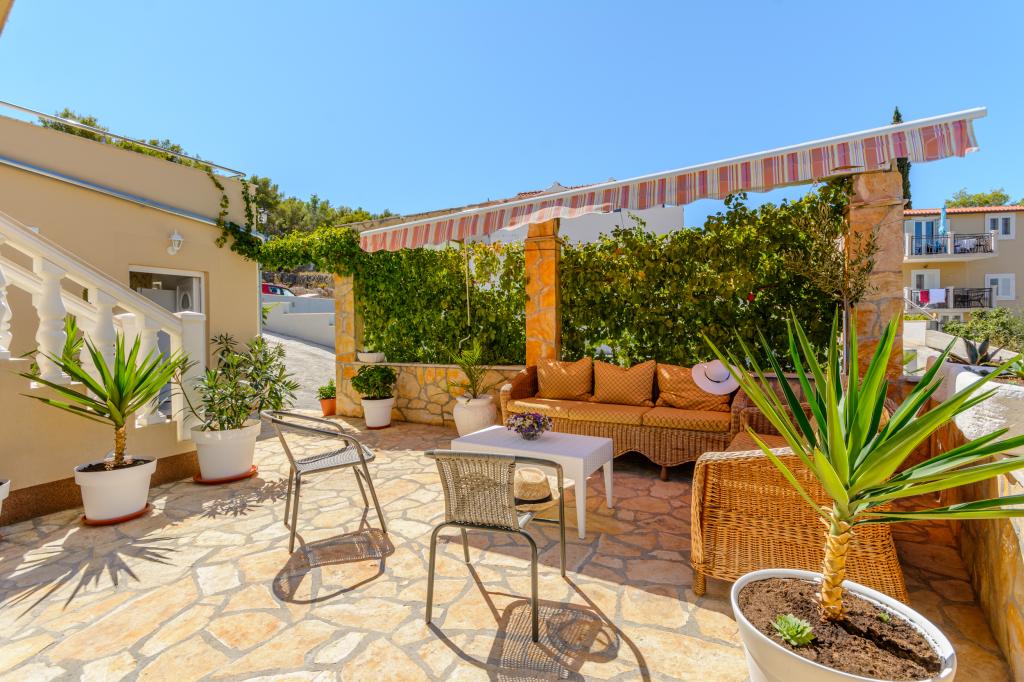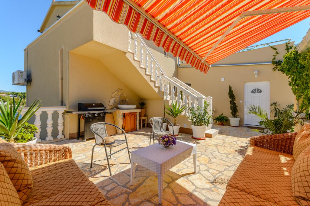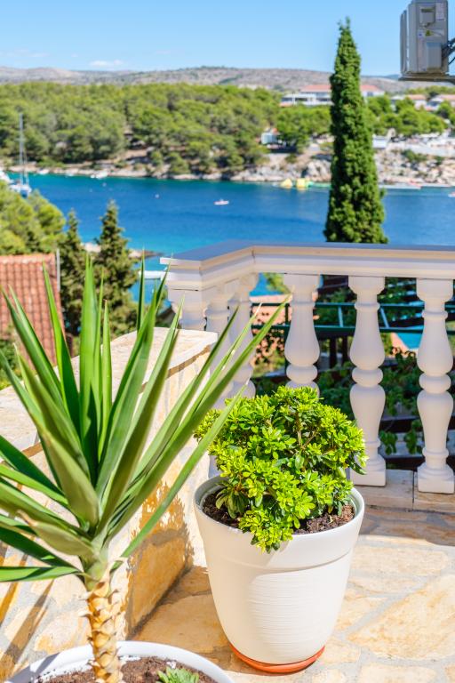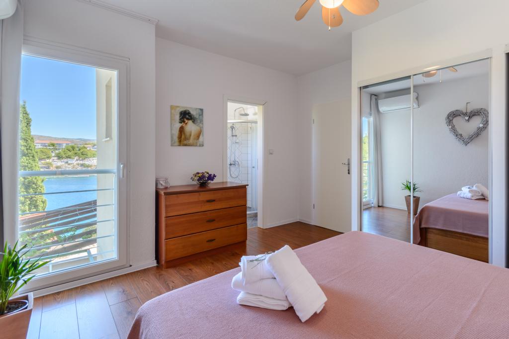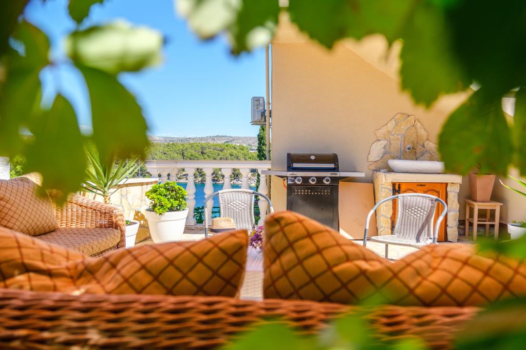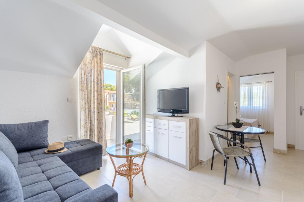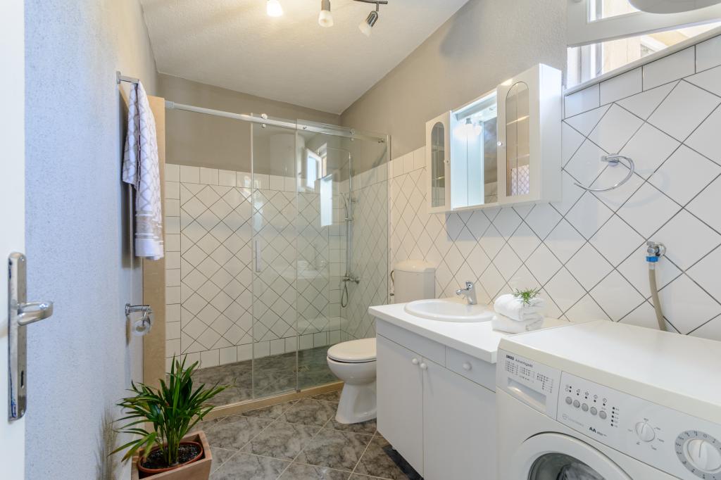 Privatni ulaz u kompletne, nove i suvremeno opremljene apartmane s pogledom na more. Vrijeme za opustanje je moguce na privatnim terasama. Osigurani su: luksuzna (satenska) posteljina, rucnici i za plazu rucnici , lezaljke i suncobrani. Da bi vam boravak ucinili sto ugodnijim u apartmanu cete pronaci susilo za kosu, peglu, toster, kuhalo i masinu za kavu. Kuhinja je opremljena svim potrebnim posudem i priborom za kuhanje kao i pitkom vodom iz slavine.