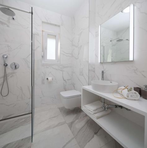 Turistička pristojba je uključena u cijenu.Villa Milla je moderna i suvremeno opremljena. Sve sobe su klimatizirane, a za hladnije mjesece je instalirano podno grijanje. Pored ugodnog komfora iz apsolutno svih prostorija pruza se predivan pogled na more i otoke. Prozori i balkonska klizna vrata su veliki i daju osjecaj slobode. U isto vrijeme je svaki apartman zaseban i intiman bez mogucnosti radoznalih pogleda. Za nase goste, tu je i veliki prelivni bazen 4mx9m sa dosta mjesta za suncanje i razonodu. U sklopu objekta, odmah do bazena je i GYM sa modernim trening spravama. Prva plaza je 80m zracane linije od nas. U neposrednoj blizini je moguce iznajmiti, skuter, bicikla, brod ili dogovoriti izlet na otoke, nacionalni park Krka itd. Villa Milla je pravo mjesto za opustanje i odmor