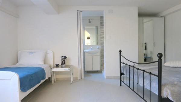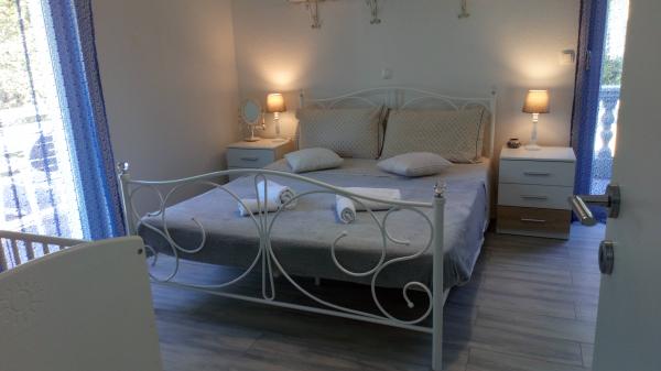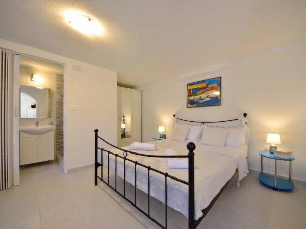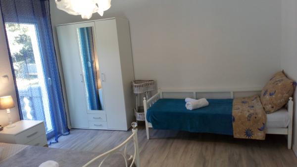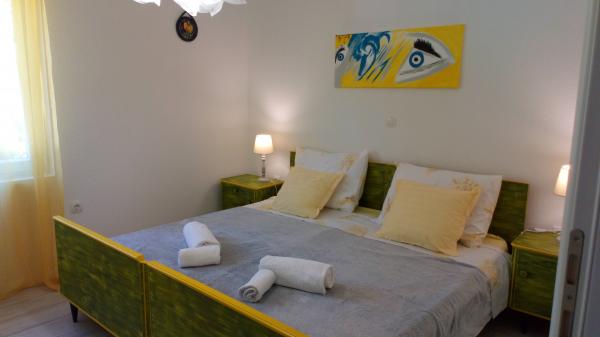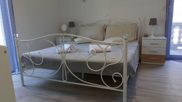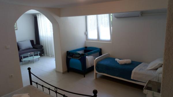 Villa Manta- Crikvenica Hrvatska ima u raspolaganju 2x apartmana. Prvi app. ima 100 m2 koje vama nudi dvije spavaće sobe, u jednoj je jedan bračni krevet i u drugoj sobi drugi bračni krevet, jedan dječji krevet i jedan solo krevet te dvije kupaonice. Veliki dnevni boravak gdje je velika komoda, garnitura na razvlačenje i kuhinja. U kuhinji se nalazi perilica posuđa, el. keramička ploča, hladnjak, toster, mikrovalna, kuhalo za vodu. Prostore jesu klimatizirane. Dole u prizemlju se nalazi drugi app. koji vama nudi dnevni boravak, gdje se nalazi garnitura na razvlačenje i kuhinja. Prolaz voltima je u spavaću sobu gdje se nalazi bračni krevet i pomoćni krevet, jos jedna spavaca soba sa ulazom na bazen, kupaonica. Prostore su klimatizirane. Vanjski prostor opremljen je grijan bazenom sa slanom vodom, tu je i klupica s mlaznicama za masažu, ležaljke i tuš. Dalje imate 50 m2 nadstrešnice s roštiljom i ljetnom kuhinjom. I 60 m2 terase. U prizemlju se nalazi vešmašina.