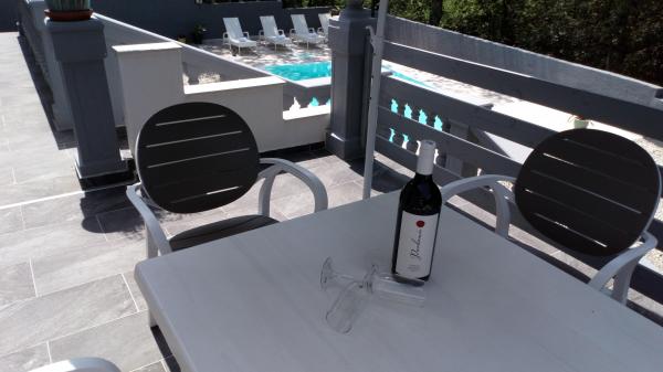 Turistička pristojba je uključena u cijenu.Svakoga gosta čeka boca vina i pršut, sir, masline, pecivo, nešto malo voća i povrća. U svakom app. je vinoteka gdje možete popit vino iz Novog Vinodolskog Pavlomir. Nudimo ronjenje, tečaj ronjenja, izlete na brodu. Igračke za djecu jesu u objektu. Sušilica za kosu. maramice za čišćenje šminke Povećalo ogledalo Deterdžent za perilicu rublja i posuda Toaster Kuhalo za vodu Mikrovalna