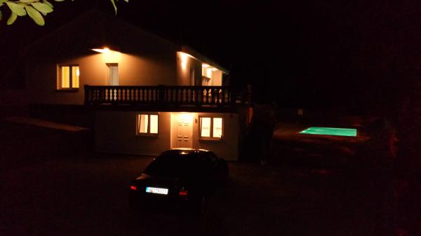 Pročitaj višeDolazak je od 17:00 sati. Odlazak je do 10:00 sati Rezervacija 30% preko banke na racun (po dogovoru) Kučni ljubinci: 8 eur/dan Grijanje bazena u 7-8- mijesacu je gratis. . Po dogovoru :od 1. 4. -30. 10. se naplacuje 15 eur/ dan Zimski period: kamin na drva 15 eur/dan ili svoje drva Cijena je za 8 osoba svaka navise se naplaca 25 euri ( dijeci kreveti2x)