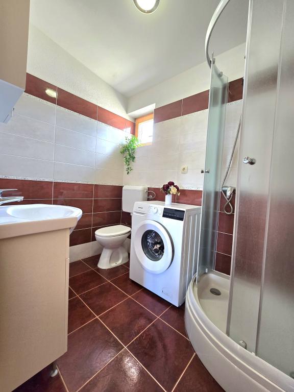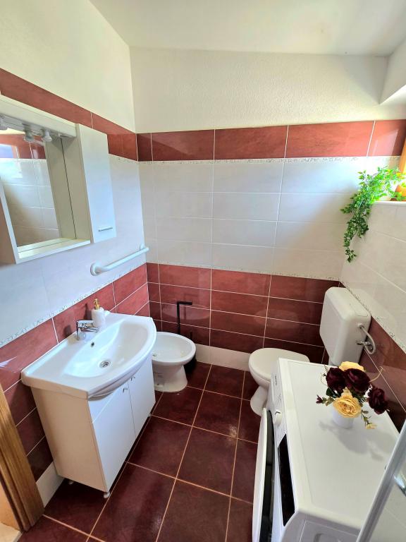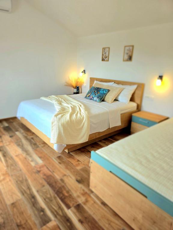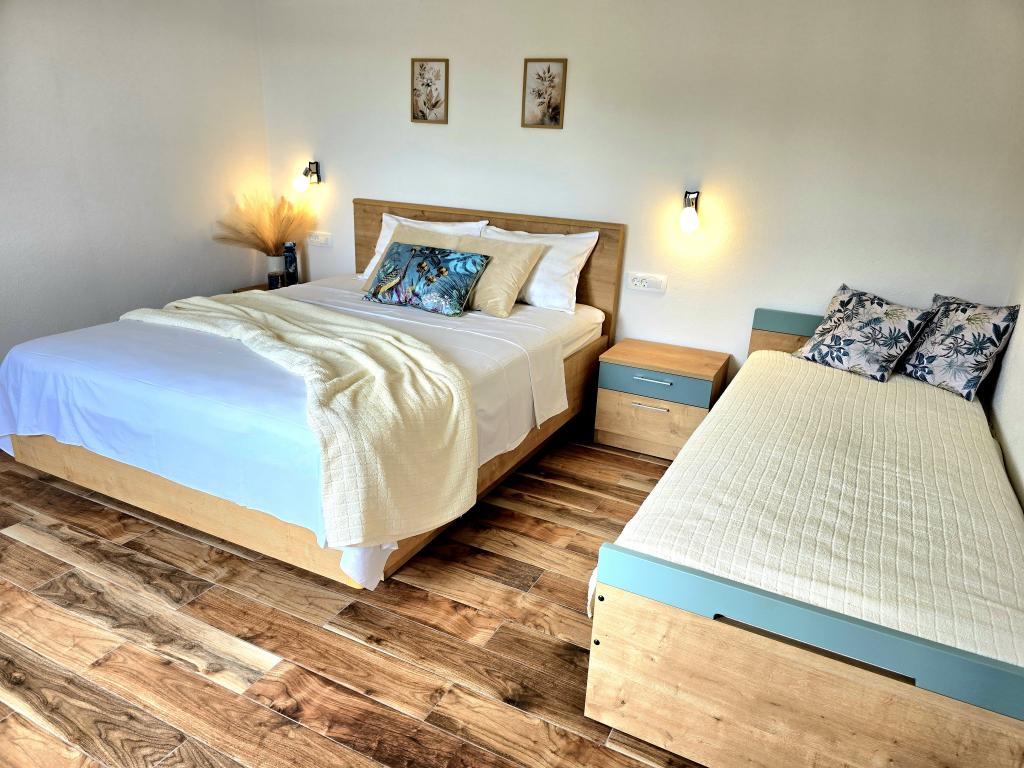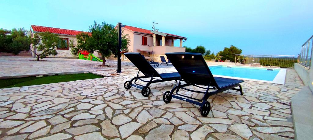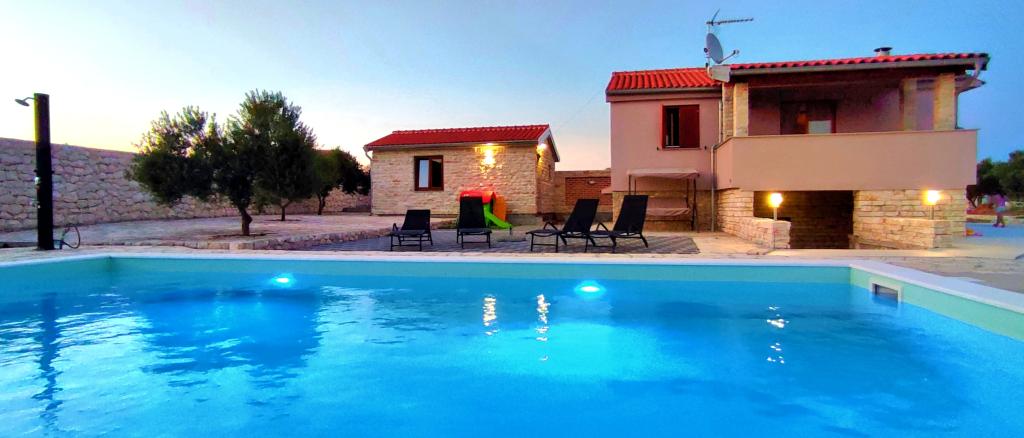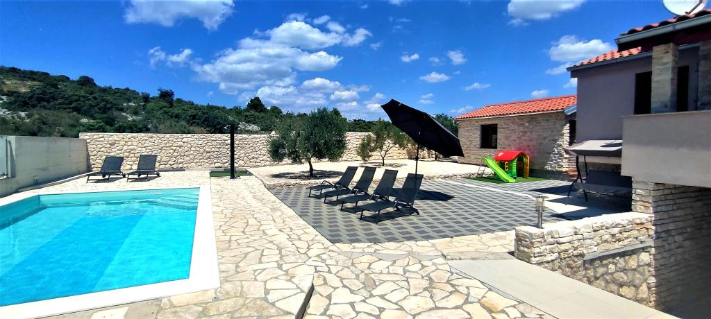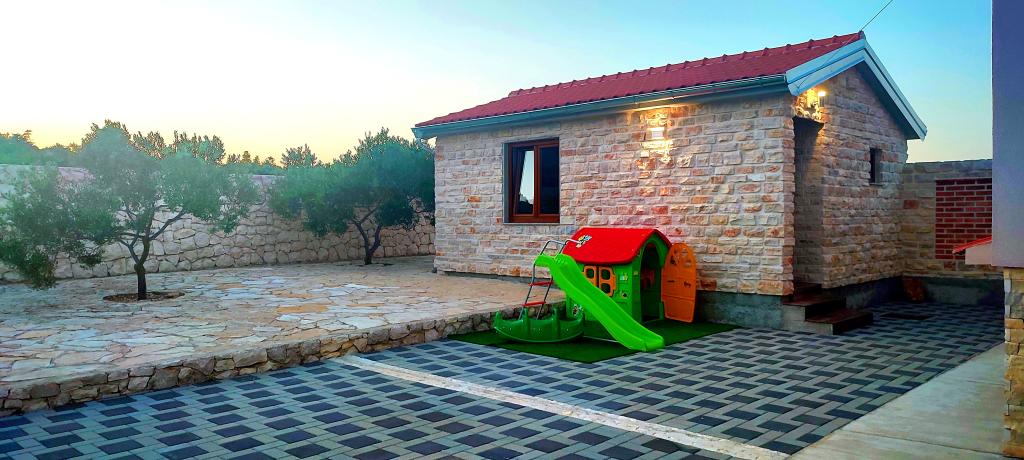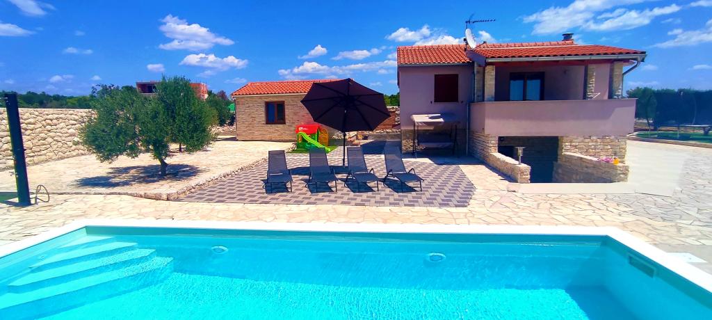 Naša kuća za odmor idealan je bijeg od gradske gužve i nagomilanog stresa,a uz to je prilagođena i za najmlađe. Sa terase se uživa u pogledu na more,koje izaziva osjećaj dalmatinske fjake. Uz privatni parking, kuća ima 3 sobe i 2 kupaonice, što pruža komfor za 7 osoba. Prostor je klimatiziran,kuhinja u potpunosti opremljena, a nudimo i baby krevet i kolica za bebe-bez plaćanja! Za više uživanja, tu je veliki bazen, vanjski roštilj, Wi-fi, Netflix, trampolin, soba sa pikadom i stolnim tenisom,spravama za vježbanje, dječji kutak. U samoj blizini smještaja, nalazi se Vransko jezero koje možete istražiti našim biciklima. Veselimo se Vašem dolasku!