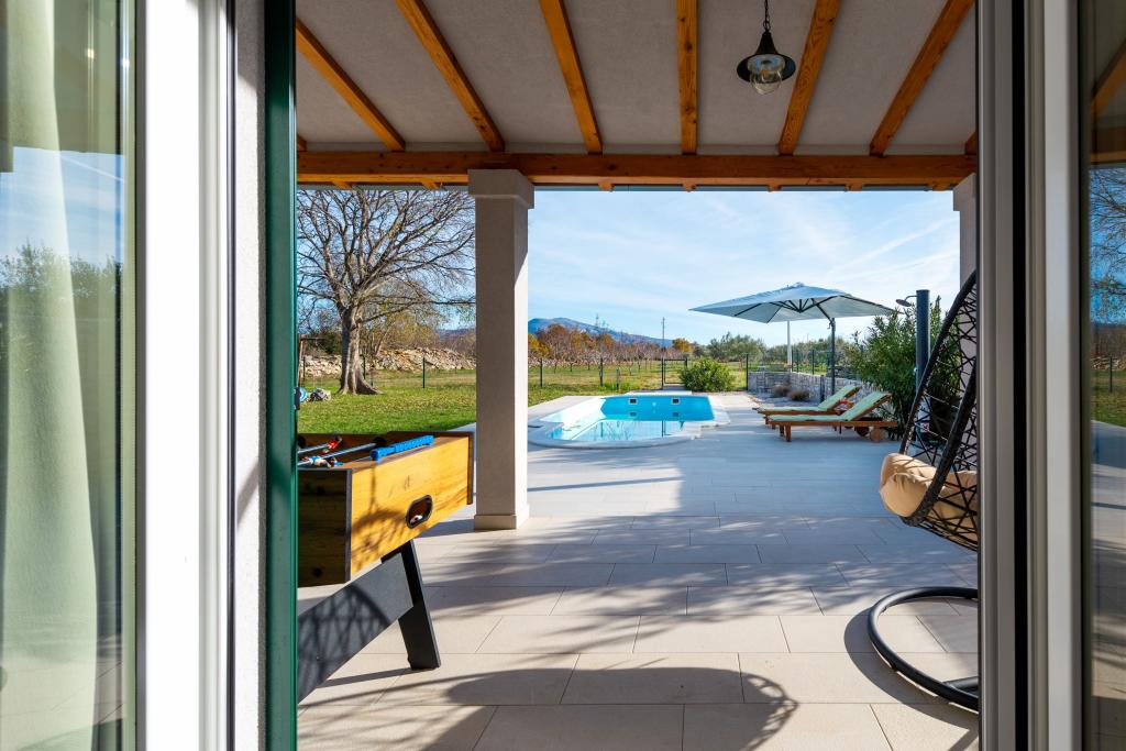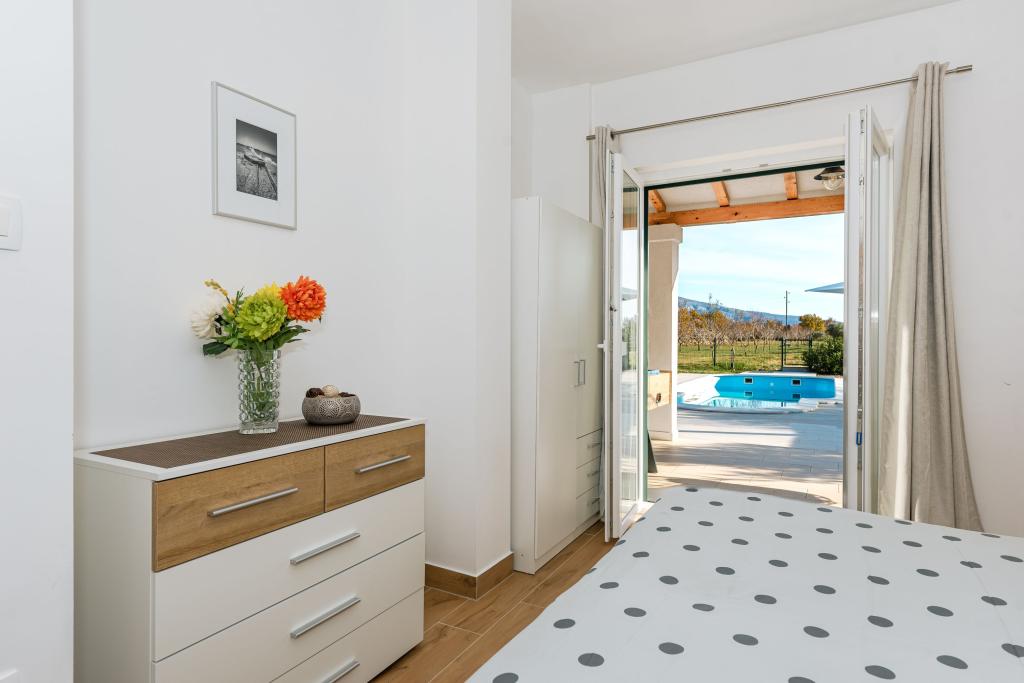 Želite li osjetiti čari Dalmacije, uživati u privatnosti okruženi zelenilom daleko od svakodnevne gužve, Villa Bajadera je pravo mjesto za vas. Uređena u kombinaciji kamena, drva i modernih motiva, idealna je za opuštanje duha i tijela. Na samo 4 km udaljenosti od Nacionalnog parka Krka, kulturnih spomenika i spomenika pod zaštitom UNESCO-a, možete se zabaviti u vožnji kanuom ili jahanju. Villa Bajadera je novoizgrađena i potpuno opremljena sa dvije spavaće sobe, kuhinjom i blagavaonom, kupaonom i prekrasnom terasom sa pogledom na bazen i maslinik. Svaka prostorija je klimatizirana zasebno.