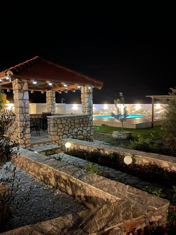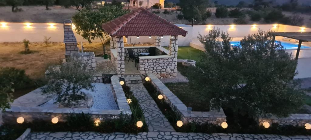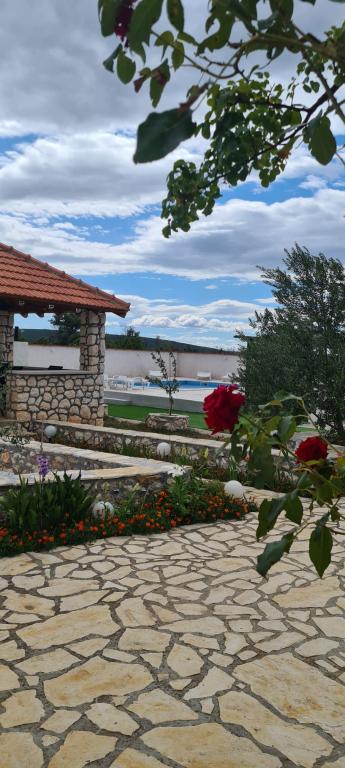 Moderno uređena villa s bazenom u srcu Dalmatinske zagore koja svojom udaljenošću od gradske vreve nudi pravi odmor za dušu i tijelo. Nalazi se u neposrednoj blizini grada Drniša i Šibenika. U prostranom dvorištu se nalazi bazen s ležaljkama dimenzija 7 x 5 te u sklopu njega nudimo i vanjski tuš. Objekt sadržava 3 spavaće sobe s 3 dupla kreveta te se u dnevnom boravku nalaze dva trosjeda na razvlačenje.