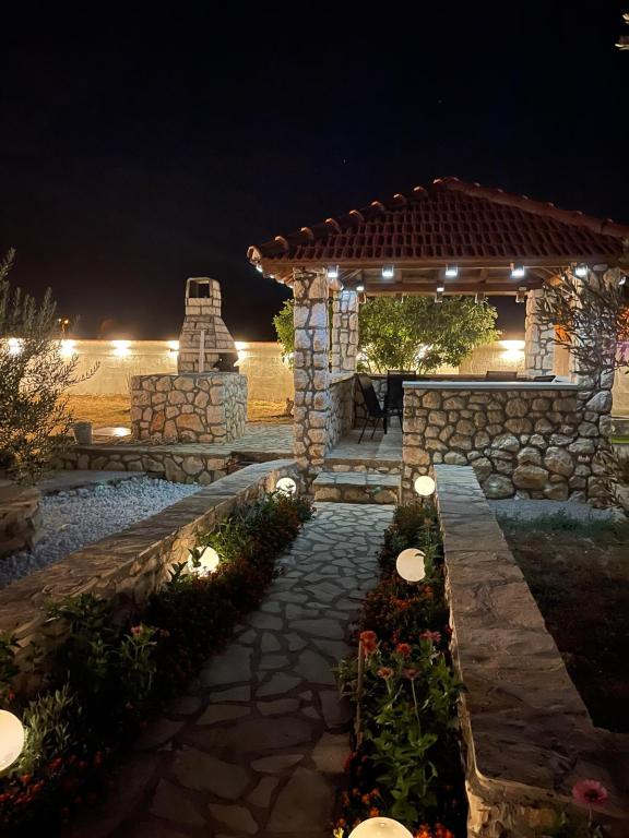 Prostrano dvorište nudi puno mogućnosti za zabavu i rekreaciju za Vas i Vaše najmlađe. Od pikada, stolova za tenis i nogomet do trampolina i ljuljački. Dok se vaša djeca igraju vi možete odmarati sjedeći na velikoj ljuljački na prozračnoj terasi ili u paviljonu. Nudimo i grill za zabavne večeri s prijateljima.