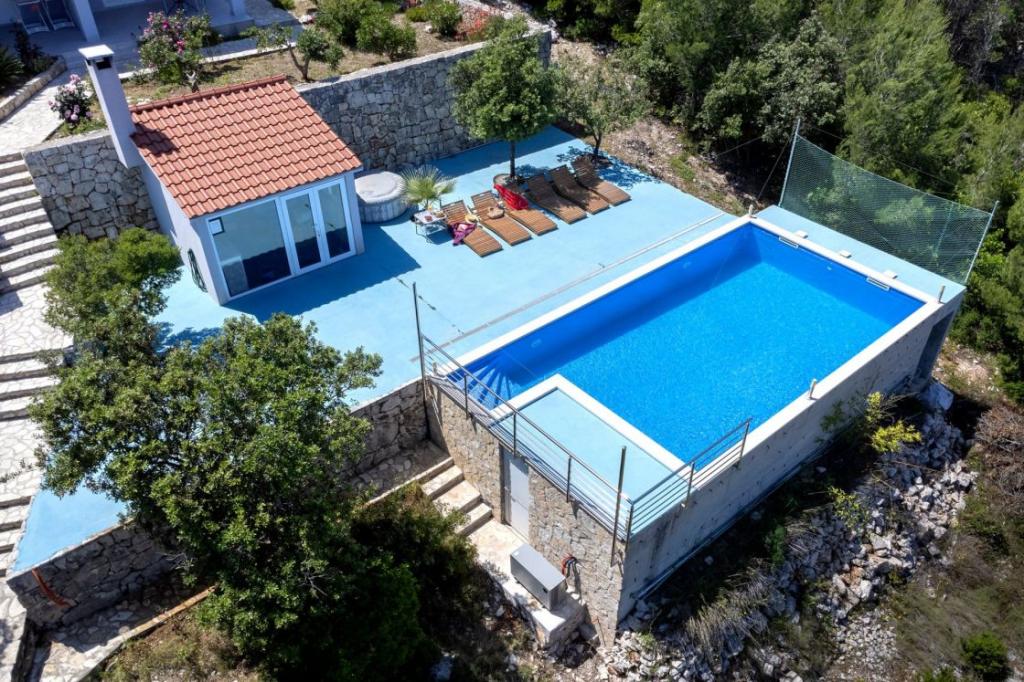 Prekrasna kuća na osami nalazi se 6 minuta vožnje od grada Hvara. Kuća je renovirana prije 3 godine. Kuća ima 4 sobe s bračnim krevetima,4 wc-a,1 kuhinju. Svaka soba ima svoju klimu. Okučnica i parking su jako veliki. Na 7 minuta hoda se nalaze 2 jako dobra restorana. Bazen je 40m². Radujemo se vašem dolasku.