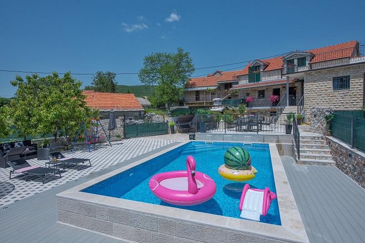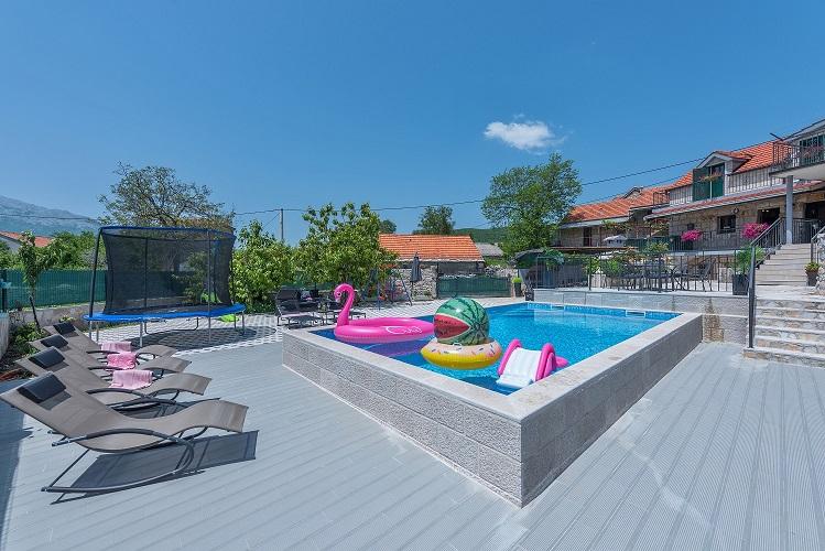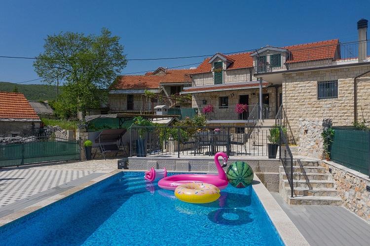 Prekrasno uređena kuća za odmor Stipanovi Dvori s bazenom u Dalmatinskoj zagori, okružena zelenilom, prirodnim biljkama i životinjama. Nalazi se otprilike 25-30 minuta vožnje od Makarske rivijere. Okružena je prirodnim ljepotama koje nude svoja veličanstvena bogatstva (zdenci, stijene, razne biljke, ceste stare preko 100 godina i više ..) Kuća se sastoji od dvije etaže i potkrovlja. U prizemlju se nalazi kupaonica i konoba s kaminom. Na prvoj etaži se nalazi velika kuhinja s dnevnim boravkom i na trećoj etaži se nalazi dvije spavaće sobe, kupaonica i velika terasa s pogledom na planinu Biokovo. Kuća je opremljena modernom tehnologijom (WiFI, pametni TV, spavaće sobe s TV-om, satelitski programi). Svima želim dobrodošlicu, lijep i ugodan boravak!