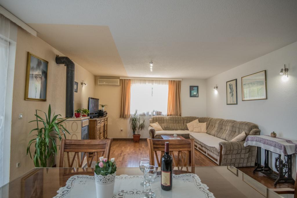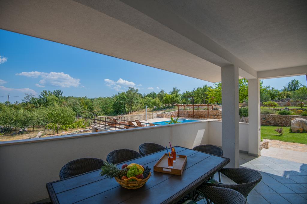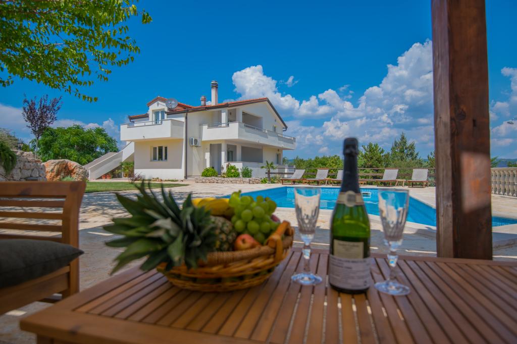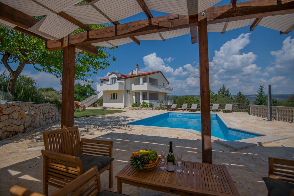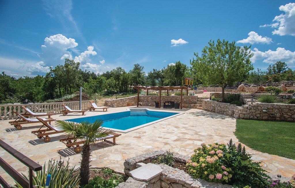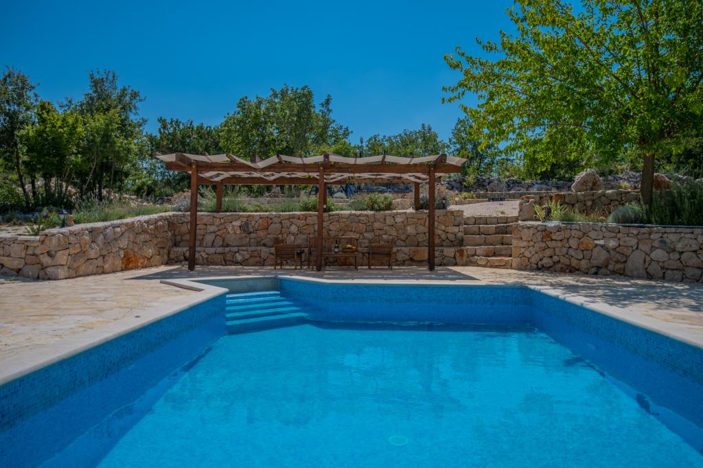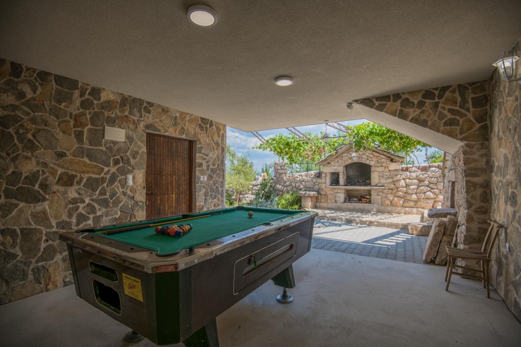 Udobna kuća za odmor nalazi se na velikom (4500 m2) imanju u idiličnom krajoliku srednje Dalmacije, u blizini grada Imotskog koji je poznat po Crvenom i Modrom jezeru. Kuća se sastoji od dvije odvojene stambene jedinice koje su moderno dizajnirane i namještene. Jedna jedinica se nalazi u prizemlju i sastoji se od tri sobe, dnevnog boravka, kuhinje, kupaonice, wc-a i verande. Druga jedinica se nalazi u potkrovlju sa dvije sobe, dnevnim boravkom, kuhinjom, kupaonicom i velikom terasom. Najniža visina stropa gornjeg kata je 200 cm u dnevnom boravku. Povezane su vanjskim stubištem. S terasa se pruža pogled na grad Imotski koji je poznat po Crvenom i Modrom jezeru. Na južnoj strani kuće nalazi se veliki bazen, roštilj i dječje igralište. Makarska rivijera udaljena je 15 minuta vožnje automobilom, a Imotski 5 km. Grubine vam mogu ponuditi tipičan odmor u Dalmaciji. Ovo područje nalazi se u blizini obale Makarske rivijere koja je daleko najpopularnija u Dalmaciji.