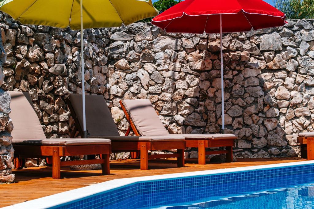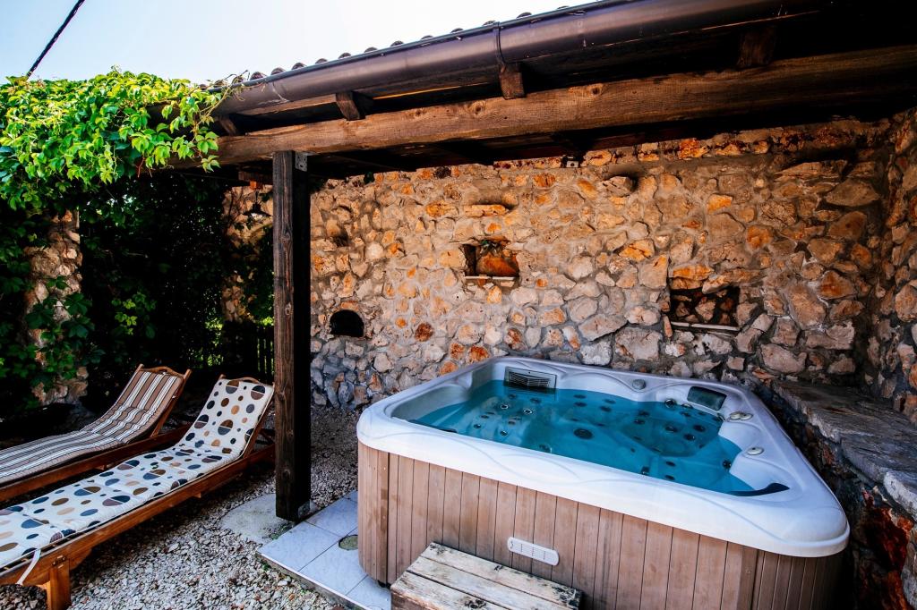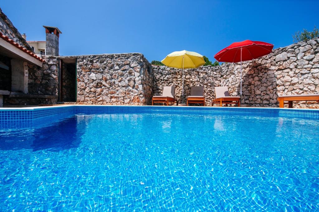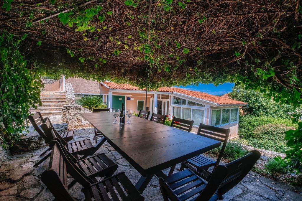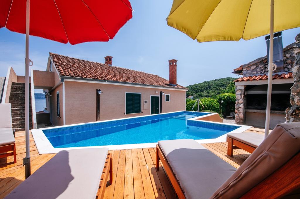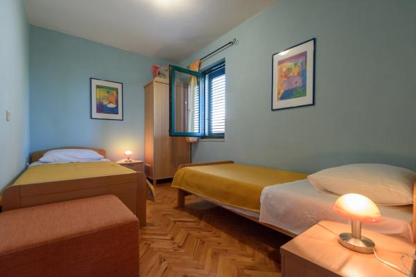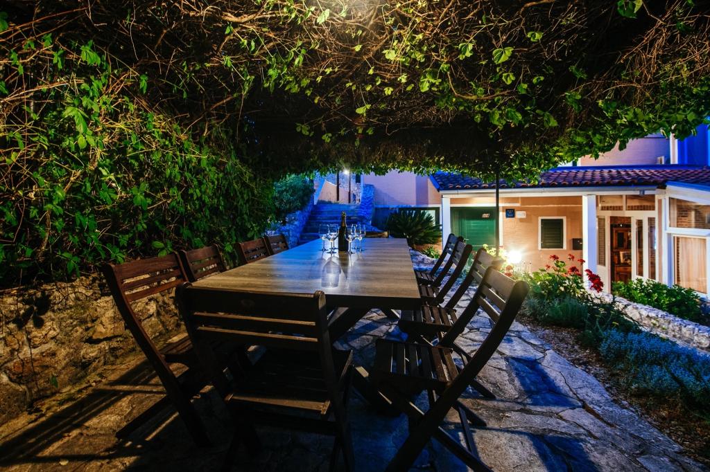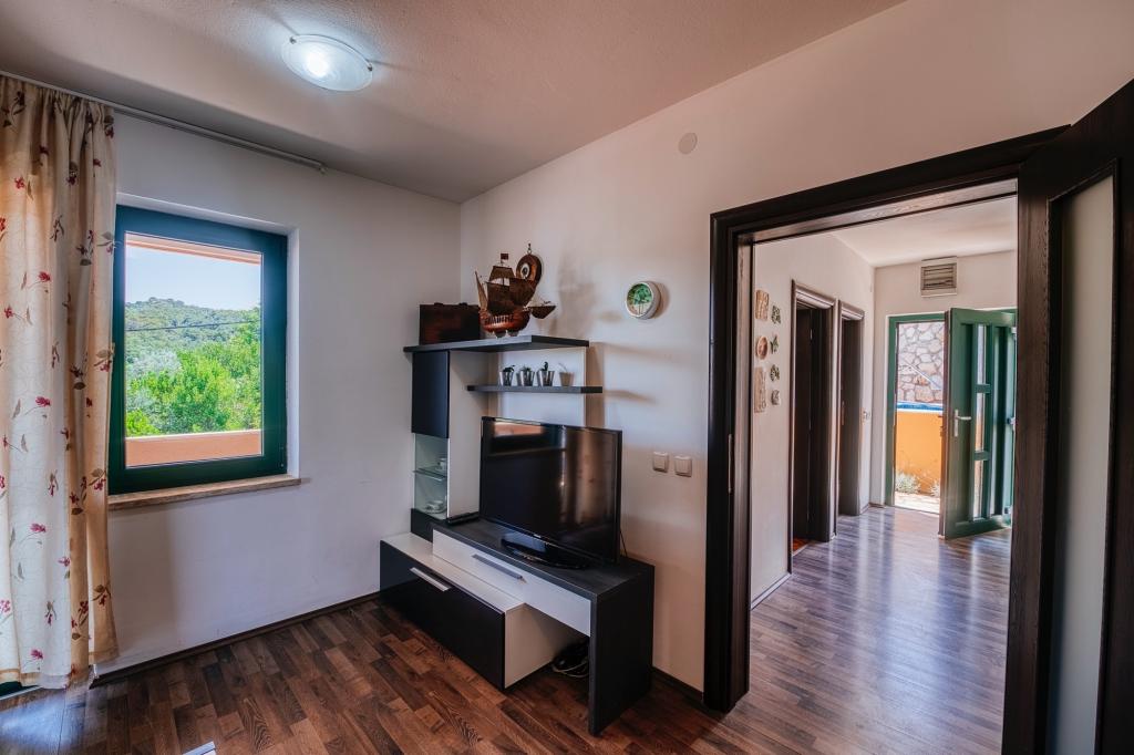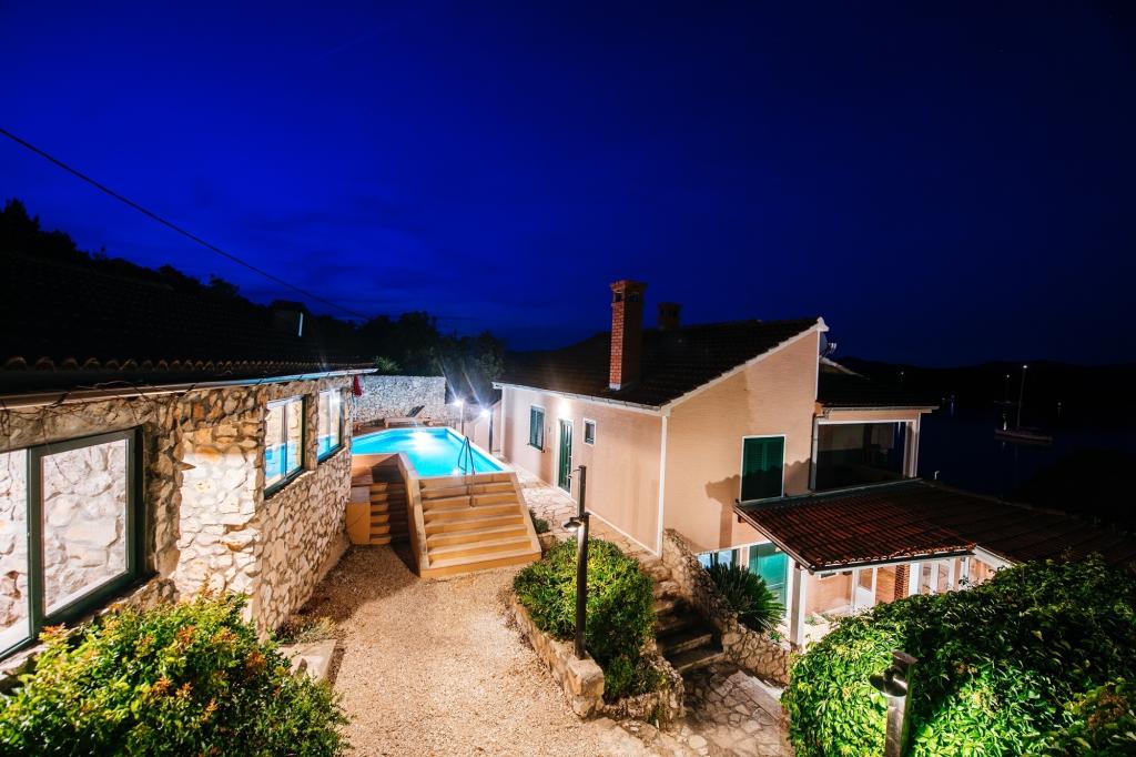 Obiteljska kuća na 2 kata. 1. 5 km od centra mjesta Mali Iž, povišeno mjesto, 30 m od mora, 30 m od plaže. Za samostalno korištenje: parcela 600 m2, terasasti vrt - bilje i cvijeće, dvorište, bazen (3 x 8 m, 130 cm dubok, 17. 05. -27. 09. ) s unutarnjim stepenicama. Nepravilan oblik bazena. Mjesto za sjedenje, terasa (15 m2). U kući: pristup internetu, perilica za rublje. Prilaz autom do 40 m od kuće. Parking na 40 m. Trgovina 150 m, restoran 100 m, plaža s oblucima, betonirana plaža 40 m. Jacuzzi i sauna. Na parceli je uz kuću još i lijepo uređena konoba s roštiljem, krušnom peći, velikim stolom za ručanje, šankom, zamrzivačem, hladnjakom za pića, stolom za biljar, pikadom i 2 WC-a.