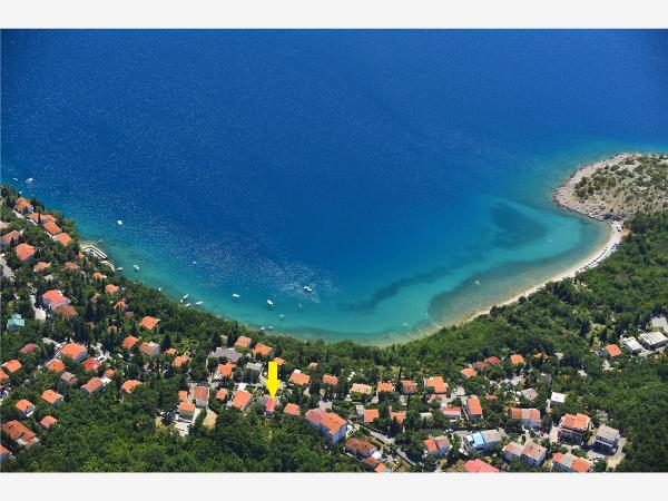 Kompletno uređena vikend kuća za odmor površine 50 m2 sa okućnicom od 240 m2, osiguranim parkingom za 2 vozila, udaljena tek 70 m od prirodne šljunčane plaže sa pogledom na otok Krk. Smještena u mirnom okruženju pogodna za savršen odmor i opuštanje, sastoji se od spavaće sobe, prostrane blagovaonice te odvojene kuhinje i velikog dnevnog boravka te dvije terase okružene zelenilom.