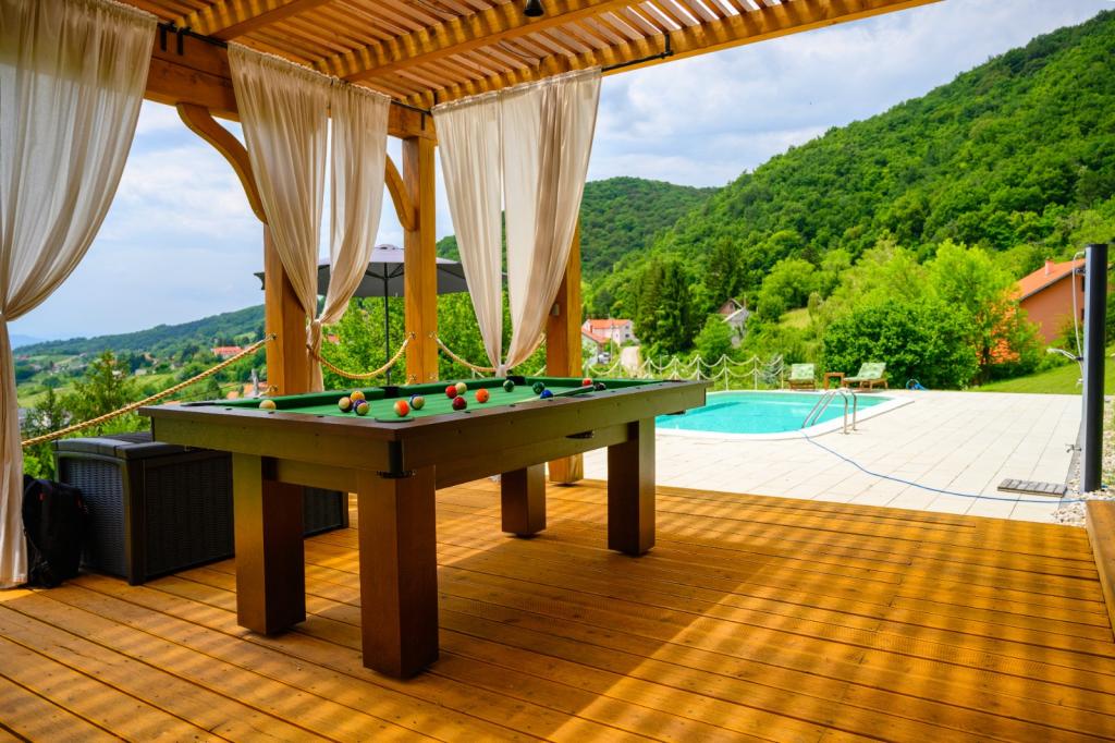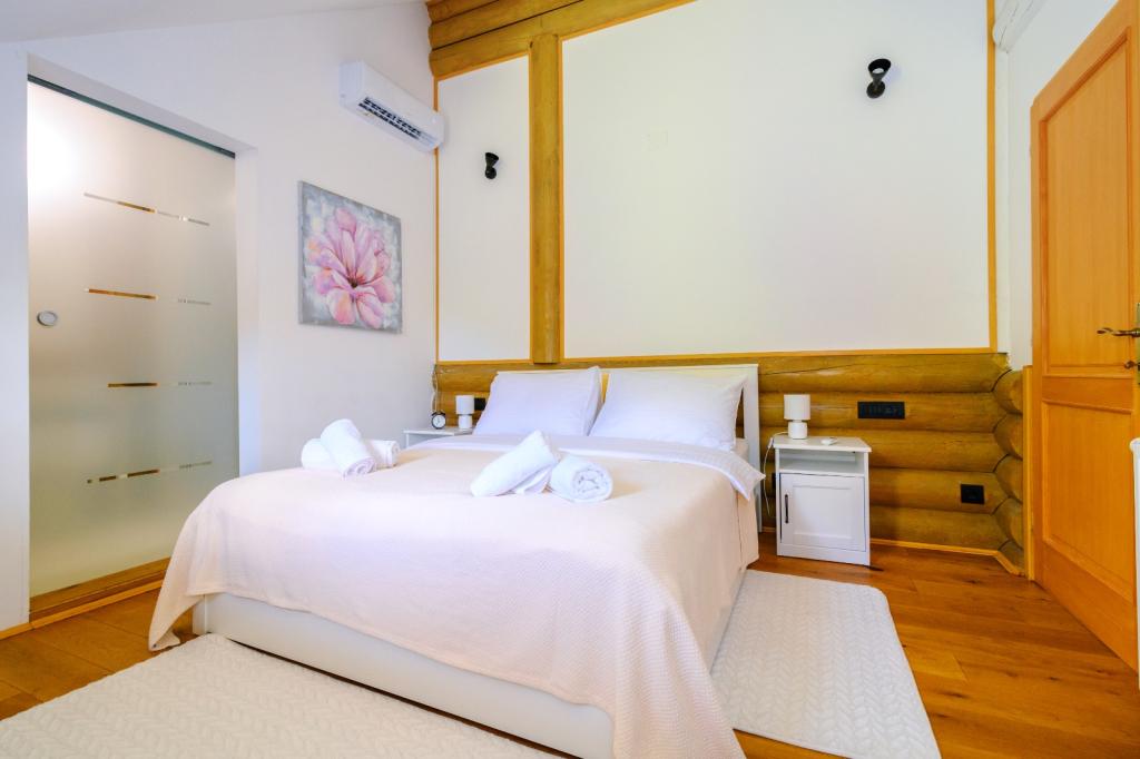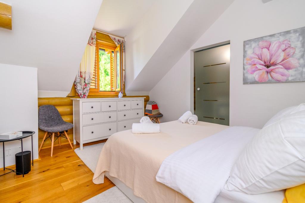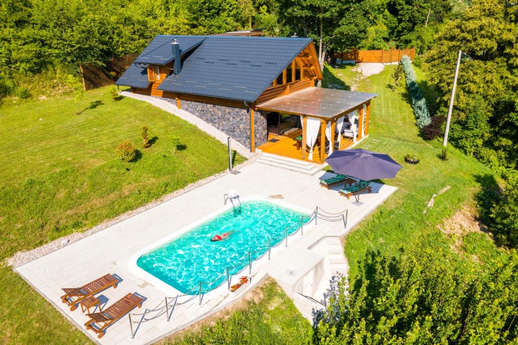 Nedaleko od Zagreba, na svega 44 km udaljenosti i na 350 metara nadmorske visine, u podnožju Japetić gorja, smjestila se drvena kuća Wellspring u Svetoj Jani (Gorica Svetojanska). Dio parcele (od ukupno 2700 m2) ulazi u zaštićeno područje Parka prirode Žumberak i kao takva je nadasve inspirativno mjesto za odmor. U samom selu postoji nekoliko prirodnih izvora pitke vode a do prvog većeg mjesta Jastrebarskog je 9 km. Drvena kuća Wellspring sastoji se od dvije etaže s besplatnim wi-fi. Na donjoj etaži nalazi se otvorena dnevna zona s kaminom, dobro opremljenom blagavaonom i kuhinjom, jednom spavaćom sobom, spa zonom sa finskom saunom i jacuzzijem, walk-in tušem, te wc-om. Na gornjoj etaži nalaze se dvije spavaće sobe sa vlastitim kupaonicama i prostorom na galeriji za odmor/čitanje. Osim kamina provedeno je i centralno grijanje za hladne zimske mjesece, te podno grijanje u spa zoni. Natkrivena terasa sa pogledom na jug iznosi 40 m2 te grijani bazen sa sunčalištem, tušem i ležaljkama.