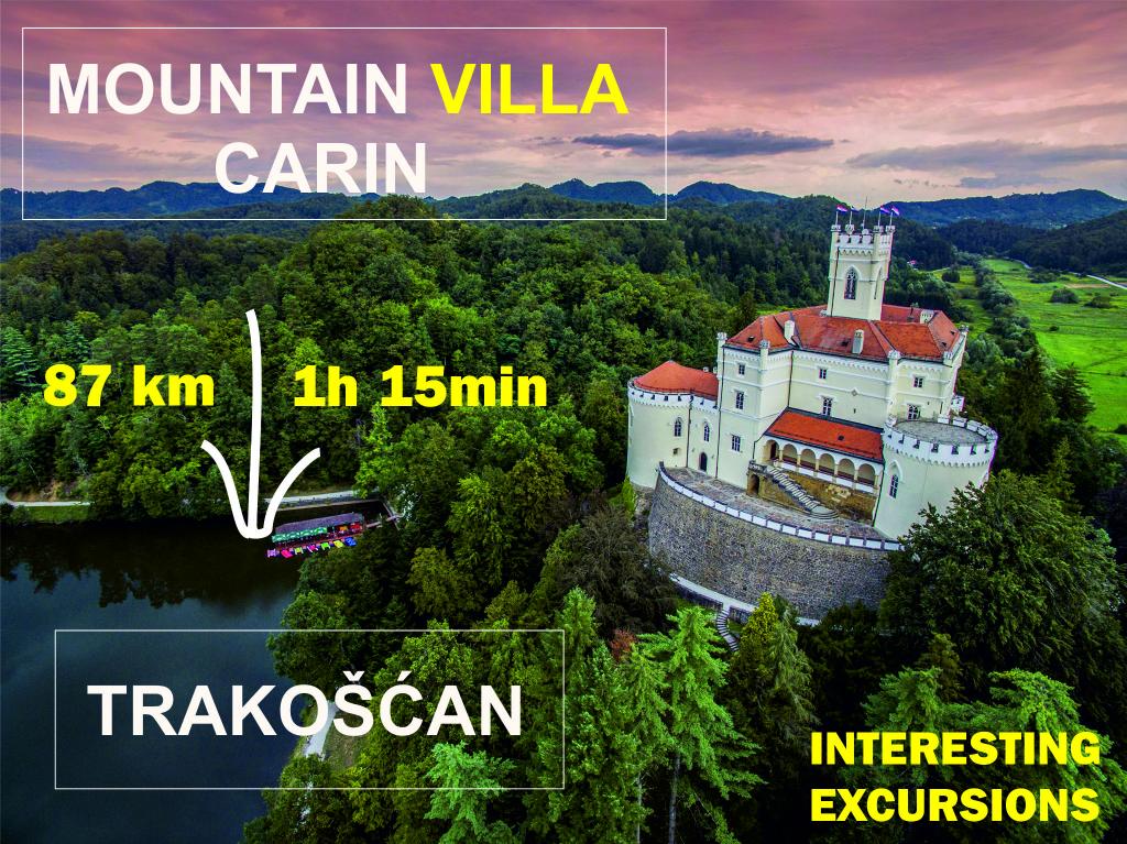 Mountain Villa Carin nalazi se u mirnom dijelu parka prirode Samoborsko gorje. Villa, zahvaljujući svom zavidnom položaju na brežuljku, nudi prekrasan pogled na cijelu nizinu u krugu 100 km. Villa ima 120 m2 stambenog prostora i kapacitet do 8 gostiju u 4 elegantno uređene spavaće sobe s bračnim krevetima, pri čemu svaka soba ima TV i prekrasan pogled. Gostima su na raspolaganju besplatan Wi-Fi, vanjska terasa s roštiljem i blagovaonicom, jacuzzi za 5 osoba, kamin na drva, grijanje na radijatore te klima uređaji za grijanje i hlađenje, što vilu čini pogodnom za boravak ljeti i zimi. Objekt ima privatni parking za četiri vozila te vanjski prostor prilagođen boravku djece i obitelji. Zahvaljujući povišenom položaju, staklena terasa s jacuzzijem pogodna za uživanje u svim godišnjim dobima, pruža panoramski pogled na Zagreb, Jastrebarsko, Karlovac, prirodni rezervat Crna Mlaka i Petrovu goru. Okolica nudi brojne mogućnosti za aktivni i opuštajući odmor.