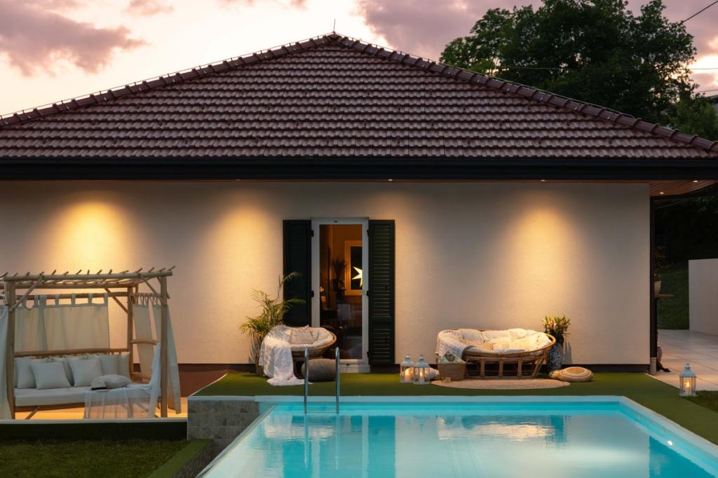 Villa Plešivica view je spoj tradicionalnog, lokalnog te modernog, industrijskog stila koja je okružena netaknutom prirodom. Posebna pažnja posvećena je detaljima koji vili daju eleganciju, prozračnost te toplinu. Iako je riječ o novoj građevini, u potpunosti je renovirana 2022. godine. Sastoji se od jedinstvenog antrea, prostranog dnevnog boravka, dvije spavaće sobe, odvojene kuhinje, dvije veličanstvene kupaonice te prekasne terase. Posebnost ove vile su staklene plohe koje nude otvoreni pogled na nebo i bajkovite padine vinograda i voćnjaka. Okućnica same vile se sastoji se od prelijevajućeg bazena, četiri različite terase te šarmantne sjenice. Sve navedeno je uokvireno s preko 3000 m2 travnatih površina koje su omeđene s autohtonim voćkama i bogatom vegetacijom. Vila nudi i spa & wellness oazu. Samo uređenje vile je eklektično te predstavlja spoj suvremenog dizajnerskog namještaja koji je uklopljen sa restauriranim art deco i secesijskim komadima koji su dio obiteljskog nasljeđa.