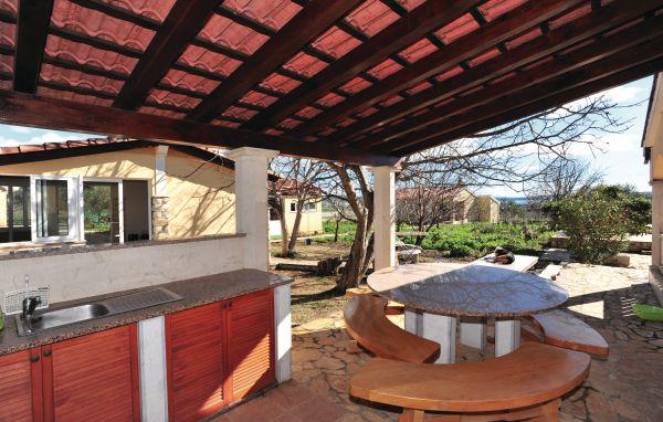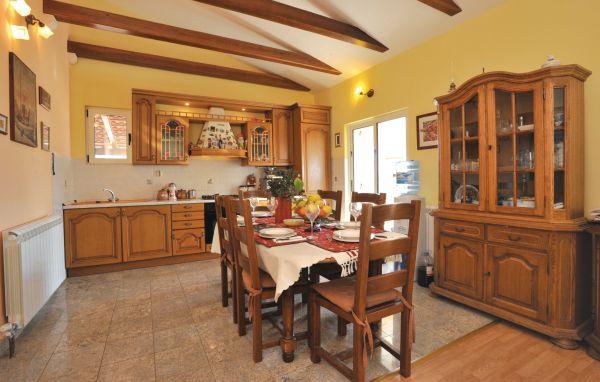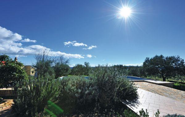 Komletno opremljena vila sa 3 sobe,kuhinjom i kupatilom + izdvojeni opremljeni apartman,bazen (55 m2),sauna sa spravama za vježbanje,nogometnim igralištem sa umjetnom travom,boćalištem,otvorena terasa,unutarnji i vanjski grill,parking za više vozila,sve ograđeno. Na zemljištu se nalazi veliki maslinik i mediteransko bilje i cvijeće.
