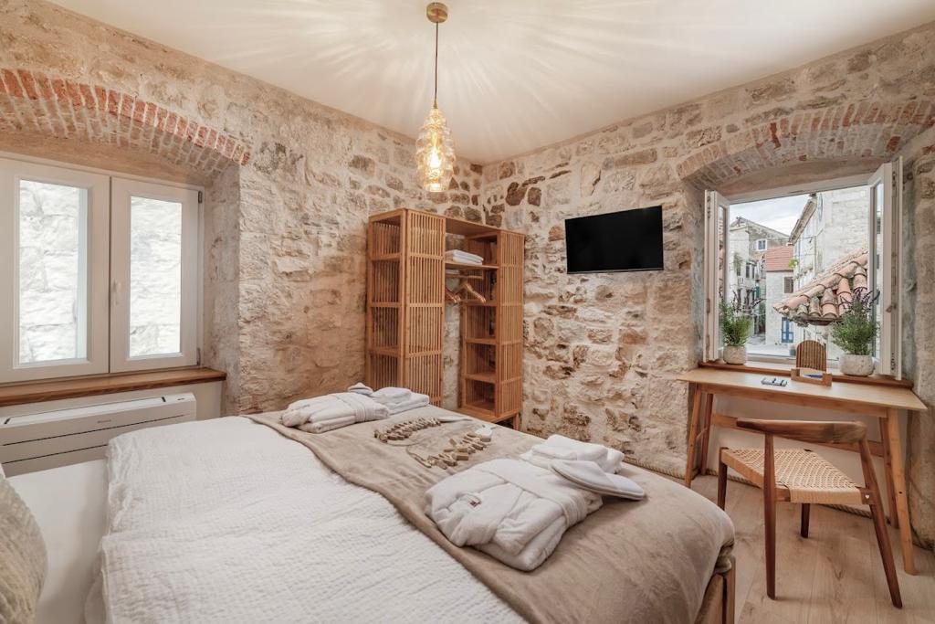 Dobrodošli u Vilu Ritu – vašu oazu luksuza i opuštanja u srcu Kaštela! Smještena u neposrednoj blizini prekrasnih plaža Gabin i Đardin, naša vila pruža nevjerojatan doživljaj Mediterana. Luksuzno opremljena autohtona kamena kuća smještena u povijesnom središtu romantičnog Kaštel Novog, 50 metara od obale Jadranskog mora. U našoj vili uživat ćete u opuštanju u prekrasnom, dizajnerskom wellnessu, gdje se luksuz susreće s udobnošću. Udaljenost od svega 20 minuta do Splita, 10 minuta do Trogira i nekoliko minuta vožnje do zračne luke Split čini je savršenim izborom za putnike koji traže udobnost i luksuz.