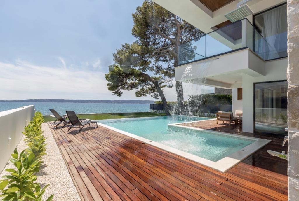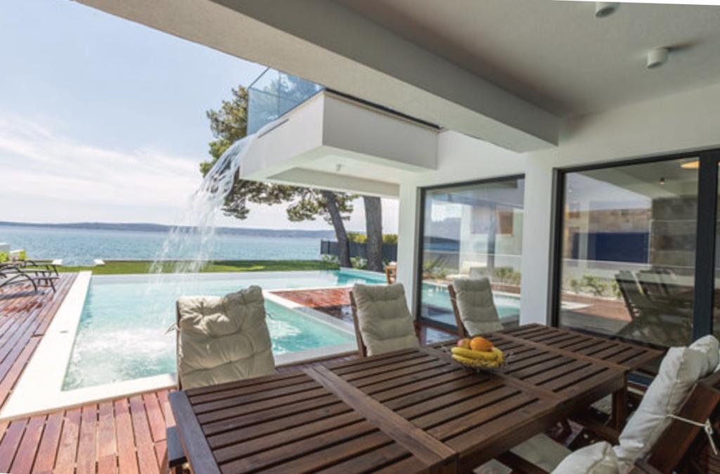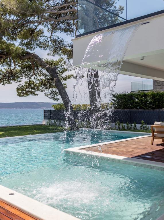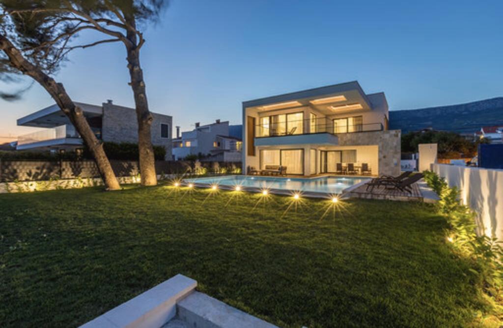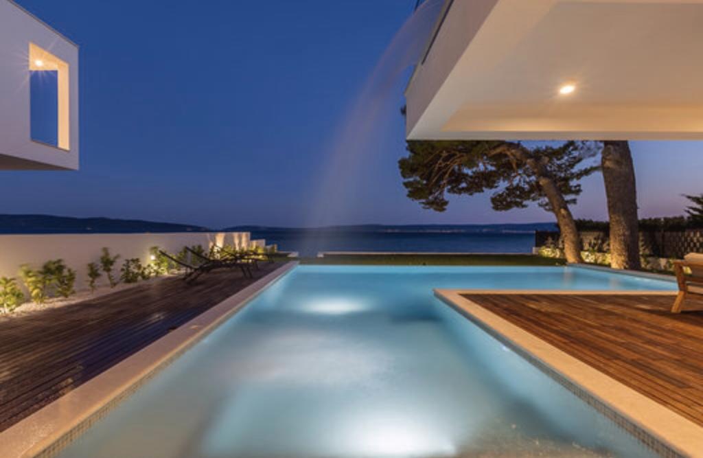 Villa Sea Star je pomno dizajnirana, odiše luksuzom i udobnošću, te je pravi primjer suvremene vile, koja se prostire na tri etaže: podrum, prizemlje i prvi kat. S južnih balkona pruža se pogled preko prekrasnog plavetnila Jadranskog mora sve do Čiova i Splita. Villa ima 4 spavaće sobe, 4 kupaonice, te vanjski toalet uz bazen i idealan je smještaj za 8 osoba. S balkona glavne sobe spušta se slap u prostrani bazen. Posjed vile je 1200m2, a stambeni dio zauzima 400m2. Okućnica je obogaćena infinity bazenom, vanjskim roštiljem i loungeom s kojeg se pruža predivan pogled na plavetnilo Jadranskog mora, te vas samo nekoliko stepenica dijeli od plaže i ulaska u more. Villa također ima i garažu, te privatni parking za 4 automobila. Vaš dolazak vam omogućuje uživanje u ljepoti odmora i luksuza, koje samo Dalmacija i vila Sea Star mogu pružiti.