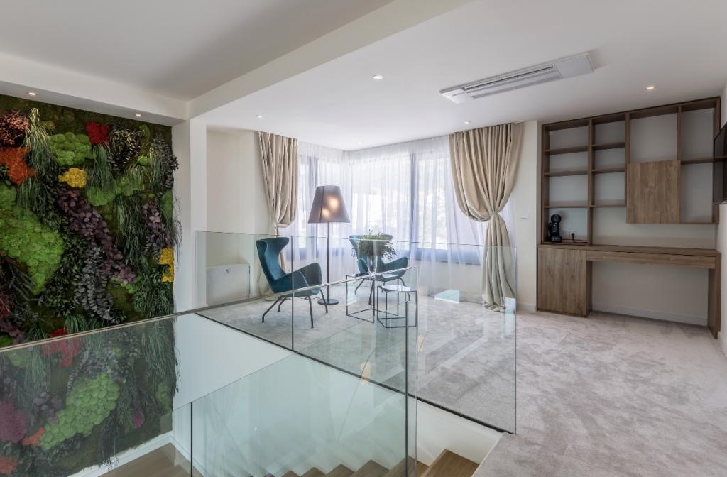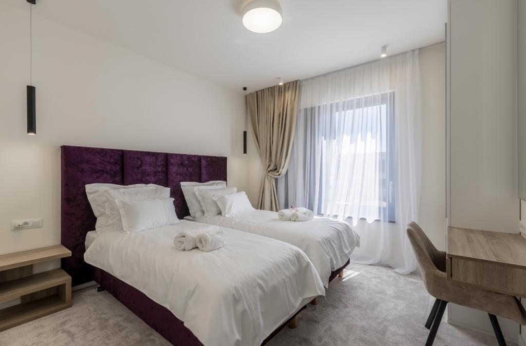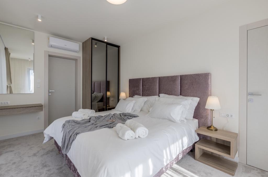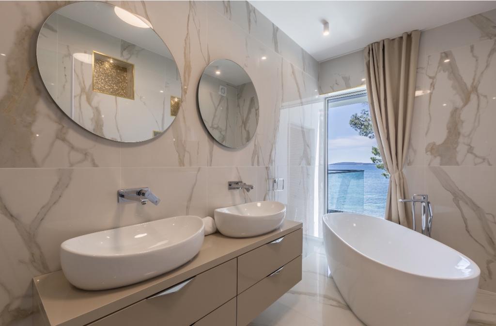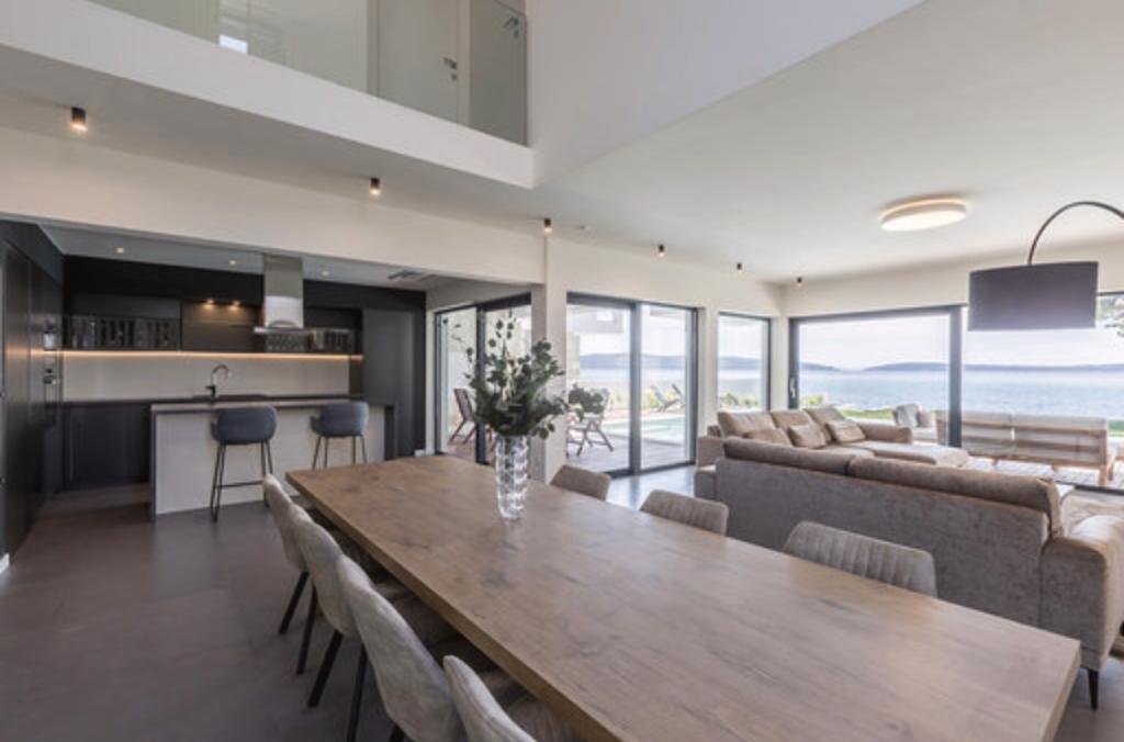 Villa Sea Star je pomno dizajnirana, odiše luksuzom i udobnošću, te je pravi primjer suvremene vile, koja se prostire na tri etaže: podrum, prizemlje i prvi kat. S južnih balkona pruža se pogled preko prekrasnog plavetnila Jadranskog mora sve do Čiova i Splita. Villa ima 4 spavaće sobe, 4 kupaonice, te vanjski toalet uz bazen i idealan je smještaj za 8 osoba. S balkona glavne sobe spušta se slap u prostrani bazen. Posjed vile je 1200m2, a stambeni dio zauzima 400m2. Okućnica je obogaćena infinity bazenom, vanjskim roštiljem i loungeom s kojeg se pruža predivan pogled na plavetnilo Jadranskog mora, te vas samo nekoliko stepenica dijeli od plaže i ulaska u more. Villa također ima i garažu, te privatni parking za 4 automobila. Vaš dolazak vam omogućuje uživanje u ljepoti odmora i luksuza, koje samo Dalmacija i vila Sea Star mogu pružiti.