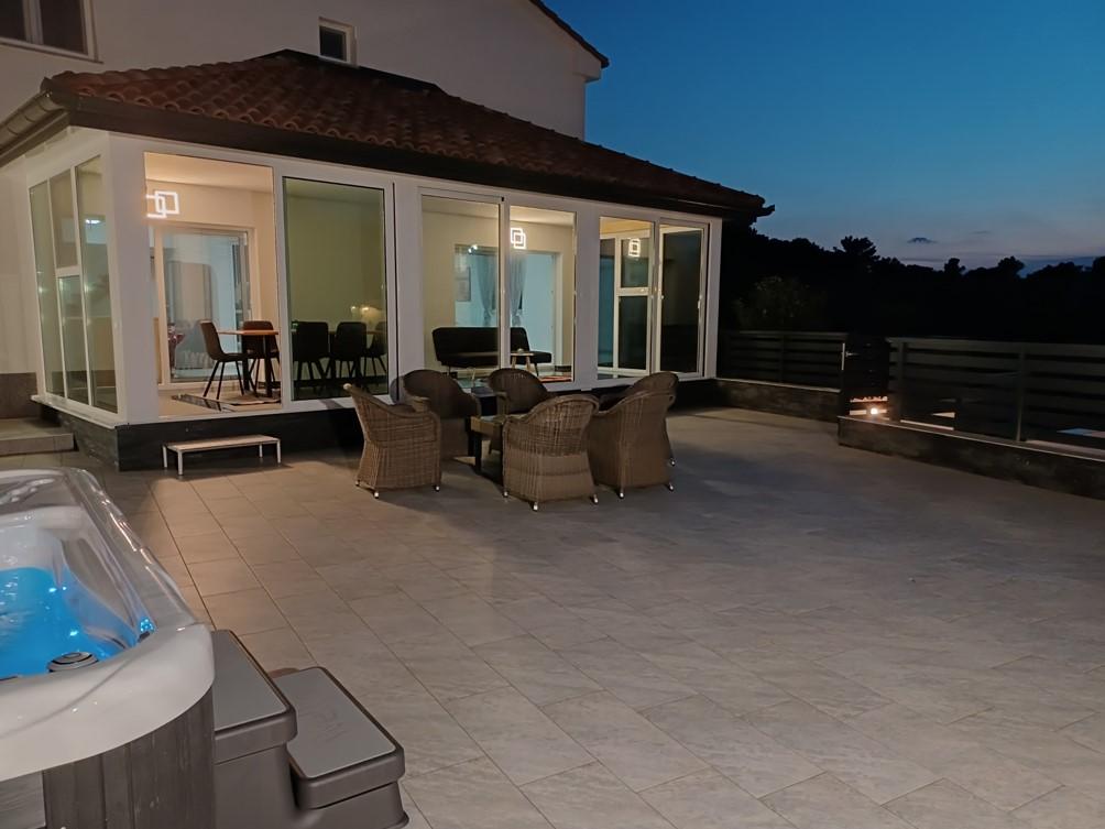 Kuća za odmor se nalazi u mjestu Klimno, na istočnoj strani otoka Krka, samo 10 minuta vožnje od krčkog mosta. Sa svojom starom turističkom tradicijom Klimno je poznato po bogatoj ugostiteljskoj ponudi u restoranima koji nude morske plodove i druge specijalitete uz obavezno autohtono vino, apartmane i privatne vile. Na 100 metara od plaže u mirnom mjestu Klimno na otoku Krku nalazi se luksuzna kuća sa 5*veličine 200 m2 sa velikim hidromasažnim bazenom za 6 osoba, sunčalištem i vrtom. Želite si ove godine priuštiti odmor u potpunoj privatnosti uz dašak luksuza I blizinu mora, odaberite ovu kuću za odmor koja ima sve što Vam je potrebno za ugodan I bezbrižan boravak. Na katu se nalaze 3 dvokrevetne sobe sa vlastitim kupaonicama,televizorims, a svaka soba ima izlaz na balkon .Svoja jutra možete započeti pogledom na suncem obasjanu uvalu. U prizemlju se nalazi moderno opremljena kuhinja i dnevna soba koje izlaze na prekrasnu natkrivenu staklenu terasu I vanjski prostor.