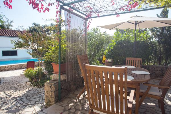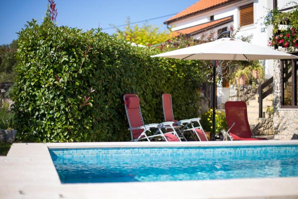 Na istočnoj strani otoka Krka nalazi se malo mjesto Risika koje broji svega 150 stalnih stanovnika. Risika je nadaleko poznata po svojoj pješčanoj plaži koja je idealna za obitelj s djecom. Želite li pobjeći od gradske gužve i životne svakodnevice u vlastiti mir, naša obitelj će Vas srdačno ugostiti na mirnoj lokaciji u prekrasnoj dvojnoj kući s bazenom! Smještaj se sastoji od dvije povezane kuće. U jednoj je kapacitet 6 2 osoba u kojoj se nalazi kupaonica, kuhinja i dnevni boravak, a na katu dvije sobe s jednim wc-om. Druga kuća kapaciteta 2 2 sastoji se gornje etaže u kojoj je soba i dnevni boravak, velika terasa te 2 kreveta u potkrovlju. U donjoj etaži nalazi se kupaonica, kuhinja i prekrasna starinska konoba. Ispred kuće nalazi se veliki bazen, a od ove godine uveli smo i jacuzzi.
